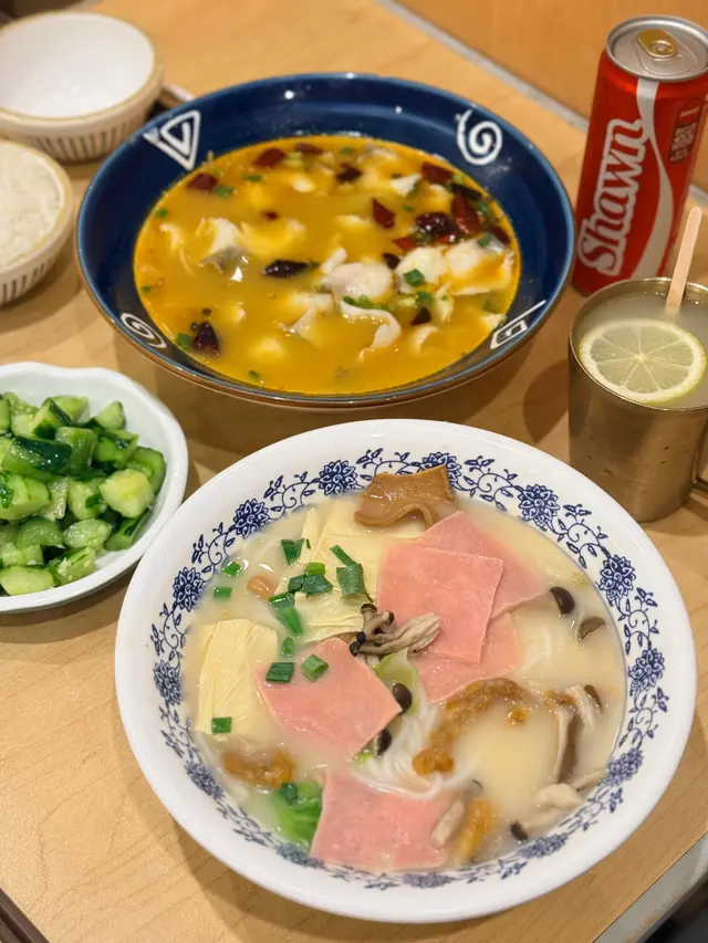 「幾時適合食酸菜魚🐟?」Anytime!為食🐑最近去咗紅磡置富都會覓食,商場入面真係多嘢食到眼花撩亂,今次專登試咗呢間人氣酸菜魚,價錢合理得嚟份量十足,抵讚!🥒 小食蒜茸手拍青瓜 $18青瓜拍得夠入味,蒜香十足之餘仲帶啲爽辣感覺,食落清新又解膩,係醒胃前菜首選!🍚 主食招牌十三姨酸菜魚飯 $79招牌一定要叫!🔥魚肉份量多到驚喜,肉質滑溜又無骨,湯底酸辣度調得啱啱好,飲落唔會油膩,仲有芽菜、酸菜、寬粉同萵筍做配料,撈飯食真係一啖接一啖停唔到口!🍜 三鮮組合米線 $58如果唔食辣,可以叫呢個:呢個米線真係材料大滿足!湯底鮮甜,配料豐富到呢~有爽口螺片、彈牙火膠、入味豬肚,仲有索哂湯汁嘅鮮腐竹同霸芝菇。最正係連小酥肉都有,浸咗湯之後更加軟腍入味,成碗食落層次感十足,絕對係心機之作!🍡 甜品紅糖糍粑(4件) $38每次見到 menu 有都必點!外層煙靭軟糯,黃豆粉香氣撲鼻,紅糖甜度適中,食完一舊就想encore!🥤 飲品加$3就有特飲,真心抵!凍柚子蜜同凍檸檬薏米水都只係$3,清爽解辣,配濃味菜一流~…查看更多