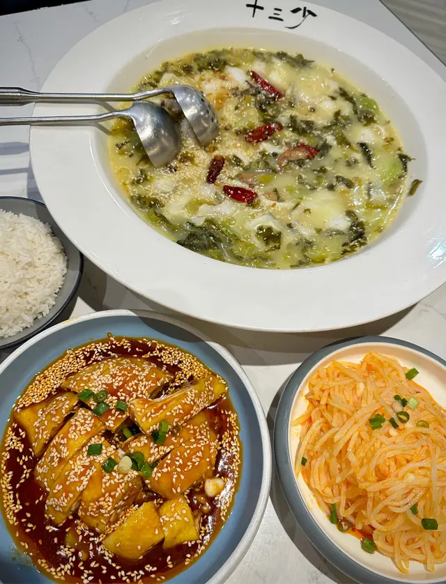 十三少樂富聯合道198號樂富廣場B區1樓1211號舖經濟版川菜套餐,一人午餐不過不失,份量ok ,做街坊生意心血來潮可以去食下。凉拌土豆絲跟餐送凉拌士豆絲,1人1碟,爽脆小辣,好開胃。午市套餐:川式口水雞 $65上枱望落細細碟食起嚟都好夠飽,雞肉幾滑,個醬汁有麻辣辣哋,但有幾件雞肉有碎骨所以食嘅時候要小心注意。酸菜魚 $70魚肉不過不失,配料幾多,個湯汁都幾夠味。話梅骨 $68個掛汁煮得幾好,不過排骨大肉少。每個餐配前菜、白飯及飲品:菊花蜜/豆漿…查看更多
