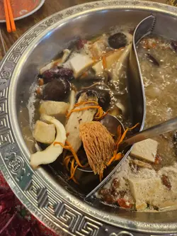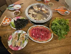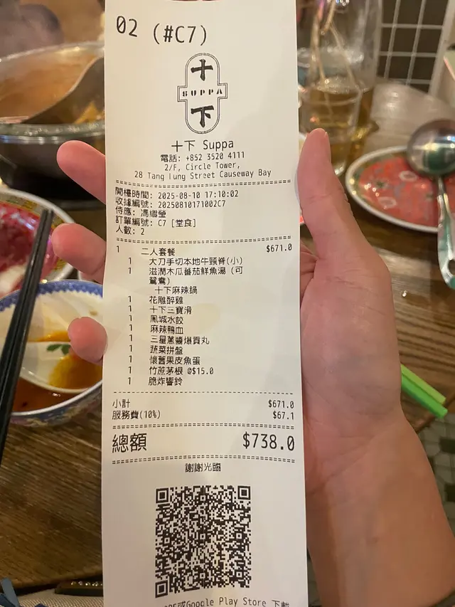 十下火鍋真係一間好有氣氛嘅火鍋店😍。一入去就好似返到舊香港咁,牆上貼住老招牌、春聯、舊式收音機同雪櫃,啲花碗碟都充滿懷舊味~🎎 全場仲一路播住經典廣東歌🎶,襯埋個環境,邊打邊爐邊聽歌,氣氛一流,夠晒有味道。🍲 湯底:清燉山藥菌菇湯 & 養生豆乳白鍋山藥菌菇湯真係誠意十足👏,入面有猴頭菇、冬菇、蟲草花、淮山同各種雜菇,湯底清香又濃郁,飲落暖笠笠,感覺好滋補🍄。越滾越出味,啲菇香滲晒出嚟,飲幾多都唔覺膩。另一邊嘅養生豆乳白鍋就比較濃厚💪,豆乳味滑順得嚟帶少少藥膳香,入面仲有蜂巢、豆腐、鴨血等配料,滾起上嚟成枱都香晒,啱晒秋冬天打邊爐~🦐 游水草蝦啲草蝦超新鮮!🦐 肉質爽彈、蝦味濃郁,蝦頭仲爆滿蝦膏🧡,一咬落去啲膏香同鮮味齊爆發,好正!🐚 象拔蚌仔象拔蚌新鮮連殼嘅,爽脆彈牙✨,放入山藥菌菇湯輕輕滾一滾,食落超鮮甜~🥩 大刀手切本地牛頸脊(小)手切牛真係靚🔥,肉質軟腍但唔爛。落湯十秒就啱啱熟,牛味香濃,入口即溶。配埋沙茶醬食,香氣四溢,超滿足🤤。🐙 鹹蛋黃墨魚滑呢個必食!非常彈牙,職員會事先將鹹蛋黃同墨魚或撈埋一齊,每啖都食到鹹蛋黃🥚,鹹香配上墨魚鮮味,好有層次~🐷 日本黑豚五花腩片豬腩肉賣相靚到似花🌸,卷得一圈圈好精緻。落湯滾幾秒就熟,肥瘦比例啱啱好,油香豐富。食落柔軟又滑,肥瘦肉連接位仲有少少脆口🤤。🥬 皇帝菜菜新鮮翠綠,滾一滾就熟,吸晒湯底嘅香味,清甜又解膩🌱。🥣 醬料台醬料由店員送上,一盤預先擺好嘅醬料台,有蒜蓉、蔥花、辣椒、沙茶醬、芫茜等。沙茶醬特別香濃,混少少芫茜同辣椒,加少少麻油就超惹味~🙌 服務貼心要大讚職員👏,會主動幫你撇油,所以湯底打到尾都清爽好飲。成餐食得舒服,細節位做得好用心。💬 總結:十下火鍋無論環境、食材定服務都好出色💖。懷舊風加上經典廣東歌,氣氛一流;食材新鮮、湯底出色,絕對值得回頭再打多次~…查看更多