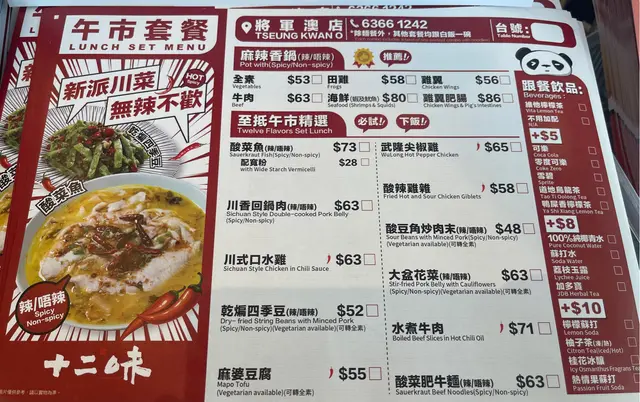 十二味 (將軍澳中心) (將軍澳) 網上訂座即賺Rice Dollars 網址: https://s.openrice.com/QrbS0XbSA00 地址: 香港將軍澳唐德街9號將軍澳中心B1樓B15號舖 電話: +852 63661242
