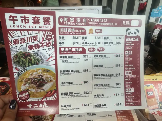 十二味 (將軍澳中心) (將軍澳) 網上訂座即賺Rice Dollars 網址: https://s.openrice.com/QrbS0XbSA00~dctQwdhv1 地址: 香港將軍澳唐德街9號將軍澳中心B1樓B15號舖 電話: +852 63661242