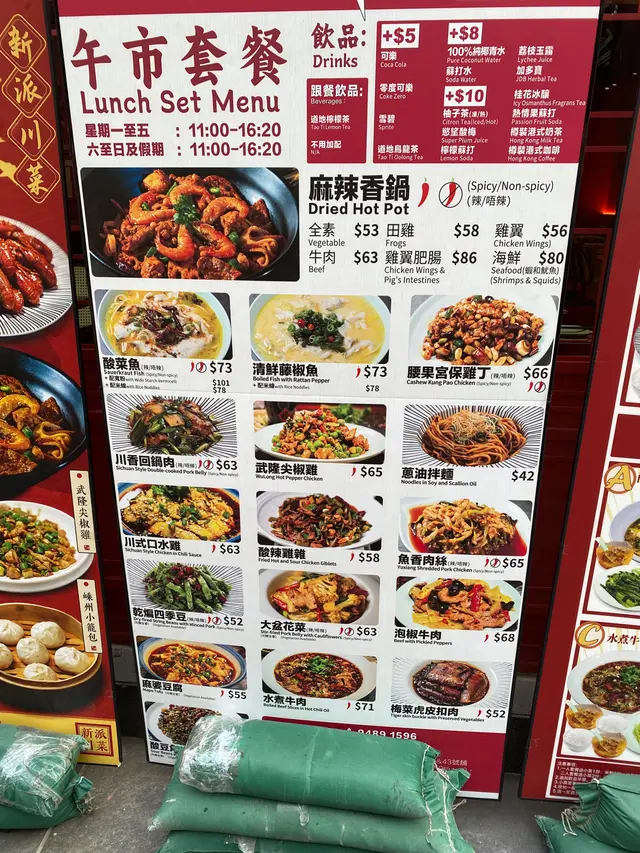 服務員很熱情周到,也能即時添水,有任何問題都能即時解答,在香港還能吃到正宗的川菜,麻辣香鍋辛辣過瘾,飲料好大杯,性價比高,空調冷氣也十足,下次一定會帶朋友即家人在來