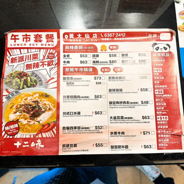 We went to the Twelve Flavours branch inside Temple Mall. It’s a Szechuan restaurant. It took us a few minutes to find the restaurant inside the huge shopping mall. We were looking for a restaurant in Won Tai sin and found a 30% discount on OpenRice. However we only found out when we were about to leave the restaurant, that the discount does not apply on set meals. In the end the discount was very low. The mapo tofu was very tasty, the tofu soft and even though it was Szechuan style it was not too spicy. We were asked before if we want it spicey. The soup was the best dish with very fresh ingredients and a distinguished taste.The beans with minced meat was also good, however the beans a bit too hard and could maybe cocked a minute longer. The Italians would describe it as al dente.The drinks were not only tasty, but also xxl size. It’s a bargain for just additional 8$ as a set meal. We really enjoyed it.…查看更多