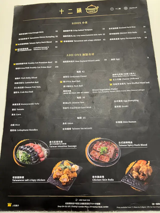 十二鍋 (佐敦) 網址: https://s.openrice.com/QrbS0shSA00 地址: 香港佐敦彌敦道219號莊士倫敦廣場地下4&5號舖 電話: +852 26692118