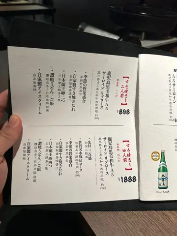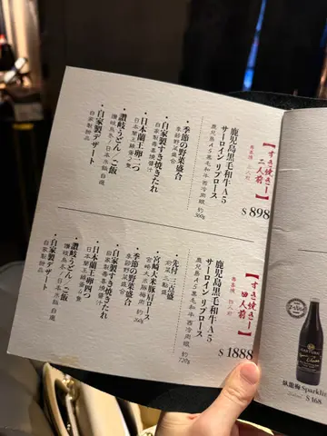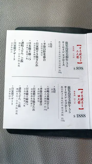 晚餐嚟到一間喺旺角嘅壽喜燒專門店。第一次嚟,估唔到喺巷仔嘅入面竟然有間咁嘅餐廳,上咗一樓,推開門之後佢哋嘅裝修風格好日式,係比較高級嘅裝修。我哋叫咗一個壽喜燒二人前($898)-前菜-野菜盛盒-鹿兒島A5黑毛和牛西冷肉眼(每人3片)-烏冬或飯-甜品落咗單之後,店員好快已經將牛肉,配菜,同埋個爐放上枱面,擺得靚靚咁俾我哋打卡。之後仲有個最大重點,就係棉花糖,成舊放上個爐上面,之後再淋壽喜燒醬汁,之前食過係用糖,但係佢哋呢度用棉花糖,效果同平時食嘅壽喜燒一樣咁好味,而且仲好有特色。之後店員就逐塊牛肉燒俾我哋,仲會詢問我哋想要嘅生熟程度,牛肉每一片都好大塊,好肥美,牛肉沾滿壽喜燒嘅醬汁,甜甜地又鹹鹹地,真係好好味,仲要配埋佢哋唧出嚟嘅蘭王蛋泡沫,又滑又香。食完牛肉之後,就將野菜同埋烏冬一齊放落去煮,份量啱啱好,兩個人食完之後都好滿足。訂枱嘅時候有備注到生日,個套餐本身都有甜品,我上網睇平時應該係兩球雪糕,點知佢哋突然拎咗個迷你蛋糕出嚟,好貼心,而且好好食。呢個壽喜燒都幾高質,唔使過遷就食到,性價比好高,絕對推薦。…查看更多