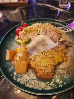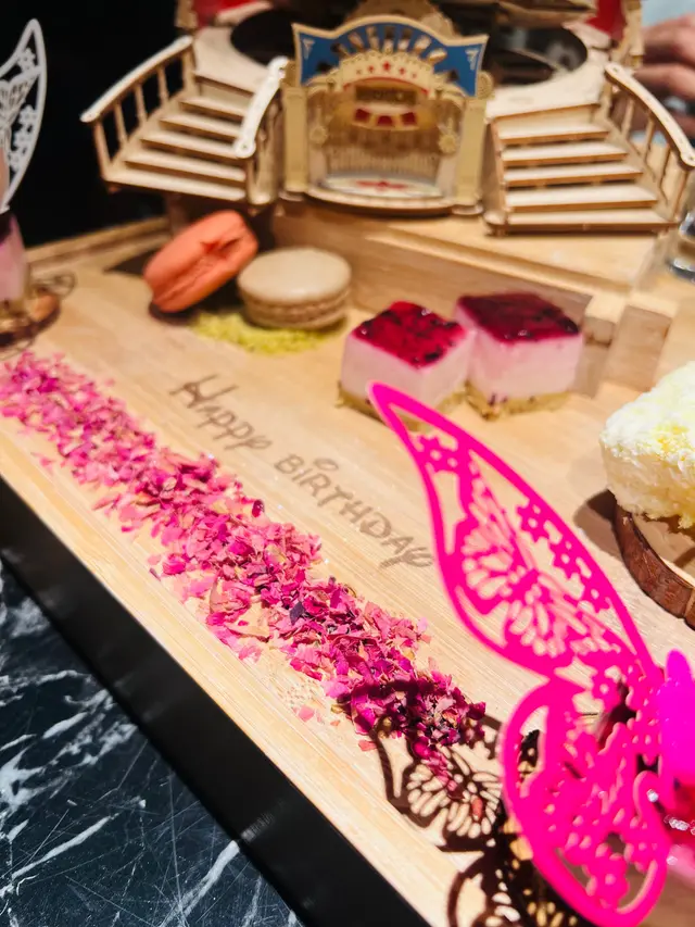 朋友生日去邊度慶祝會令佢有驚喜呢?見過呢個動感 甜品拼盤 $338,迷你夢工廠生產中x煙花,儀式感滿溢!唔使考慮,就去呢間 Metastage 十八夢。工場的輸送帶是活動的,機器在旋轉,這個摺紙模型,製作認真!煙花在面前點亮,燃燒片刻!而且別於一般西餐廳,設置一個大舞台,全晚播放着流行音樂;不同日子的晚上會有現場歌手或特別表演節目,我們去的這晚夜有人包場教跳舞,看着人跳舞都開心!食物方面,富創意、有心思,價錢合理。烤雞凱撒沙律 $148首先吃烤雞凱撒沙律,沙律菜新鮮爽脆,雞胸肉香軟,完全不嚡,煙肉粒鹹香出眾,脆脆地令食味提升。吞拿魚芝士烤薄餅 $158芝香四溢,外脆內軟,健康的吞拿魚作餡料,是吃得安心的美食。蘑菇湯 $88蘑菇忌廉湯,順滑味美。烤黑毛豬豬架 $238鋪滿麵包糠的黑毛豬豬扒,煎至金黃焦香,肉質結實味香,水準之上。青咖喱泰式海鮮意麵 $208調味恰到好處,意麵掛汁,海鮮豐富。好戲在後頭,甜品拼盤文章首段已經介紹了,五款九件,二人分享,非常滿足。盡興的一夜。…查看更多