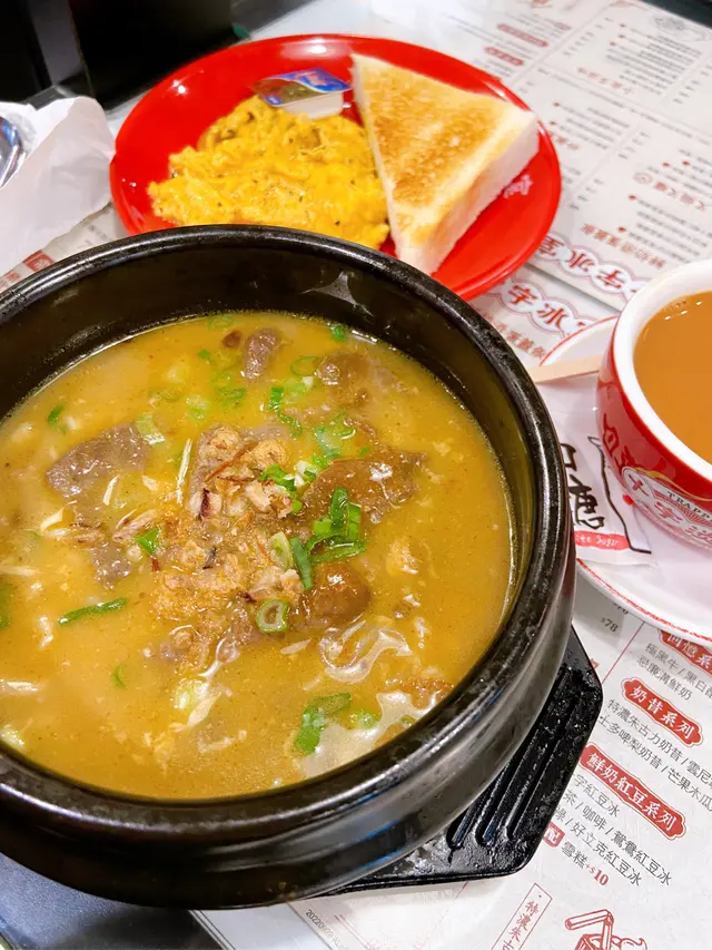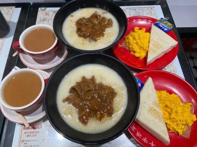 「唔该,番茄牛肋肉通粉走葱!」十一点冲到冰室,招牌通粉上桌先啜口汤——新鲜番茄打蓉的酸香撞上牛肋慢炖的脂香,稠得挂住勺背!牛肋肉肥筋软糯,咬落溢出肉汁混进汤里;通粉吸尽精华却未发胀,弹牙感满分。秘诀在汤底沉底的番茄籽,证明非罐头货色,酸度明亮过中环白领的西装。奶茶一啜滑入喉似缎带,茶胆浓到舌根微涩,旋即被淡奶温柔包覆。杯壁冷凝水珠滴落手背,冰凉衬着热茶香,恍如回到三十年前老冰室。伙记叔叔见我空杯,眨眼问:「后生仔,要唔要*茶走*(炼奶替代糖)?更香㗎!」 > $62通粉+奶茶套餐,> 番茄汤每日限量…查看更多
