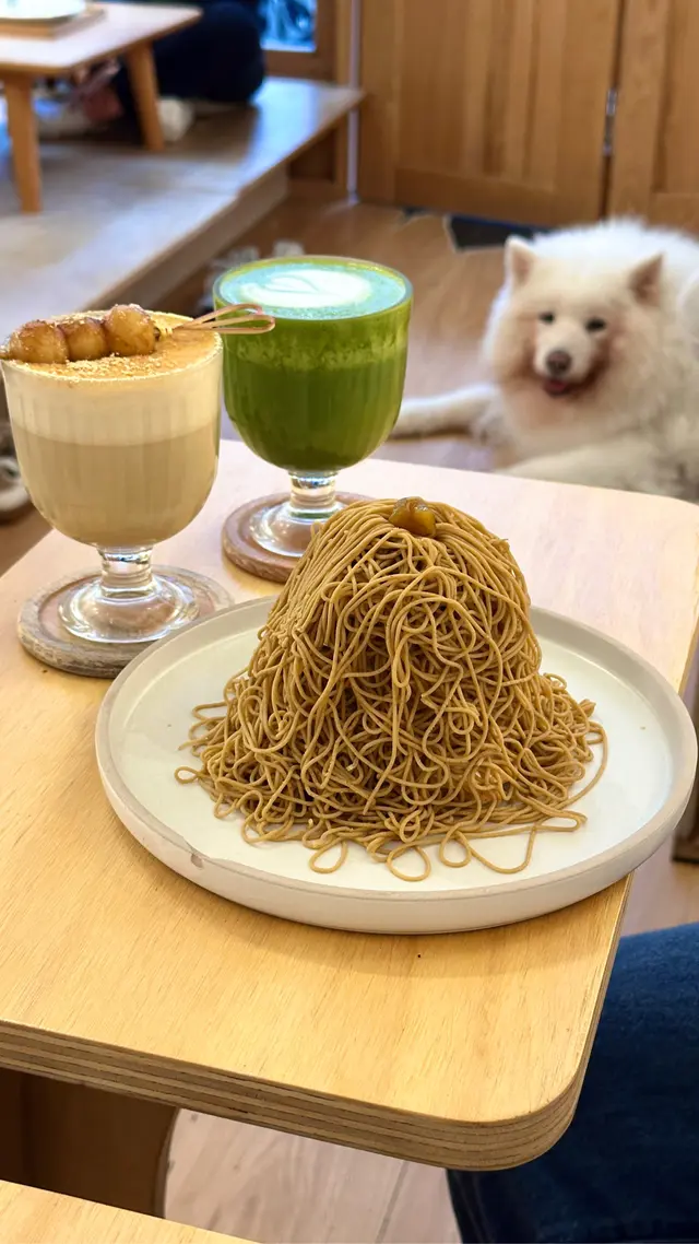 和栗蒙布朗 (必食推介~)本身對栗子唔好喜好👀有得揀未必會揀有栗子嘅野食🤣但嚟呢間cafe之前做咗功課嘅我知道呢個栗子甜品好多人like就點都試下🤓佢嘅製作過程好得意 成個過程好似整免治豬肉咁🤣食落以為成個都係栗子會好濟 點知一切開 入面係雲尼拿雪糕🫶🏻哇估唔到可以咁夾🥰一啖栗子一啖雪糕擺入口 啲雪糕令栗子無咁濟 而食落都覺得雪糕唔係cheap cheap雪糕嘅味道😆我就咁食個雪糕 都覺得好好食!粟子亦都真係好濃味😂如果一個人食應該會濟🤣🤣🤣同埋同埋個脆脆底都好好食 overall好夾好正🫶🏻.原味卷蛋 啊呢個都好好味😍蛋糕口感好好食 入口即溶嘅感覺 加埋啲cream 一流🥹🫶🏻而且成件事好食得嚟又唔會死甜 由於太軟屬 食完真係想自己一個食多舊🐒🤣.焙茶鮮奶 焙茶味足!拉花加分!🥰.抹茶豆乳 ($45)同伴呢杯應該都不錯 都唔係死甜!但都係應該冇甜品咁特別😚查看更多