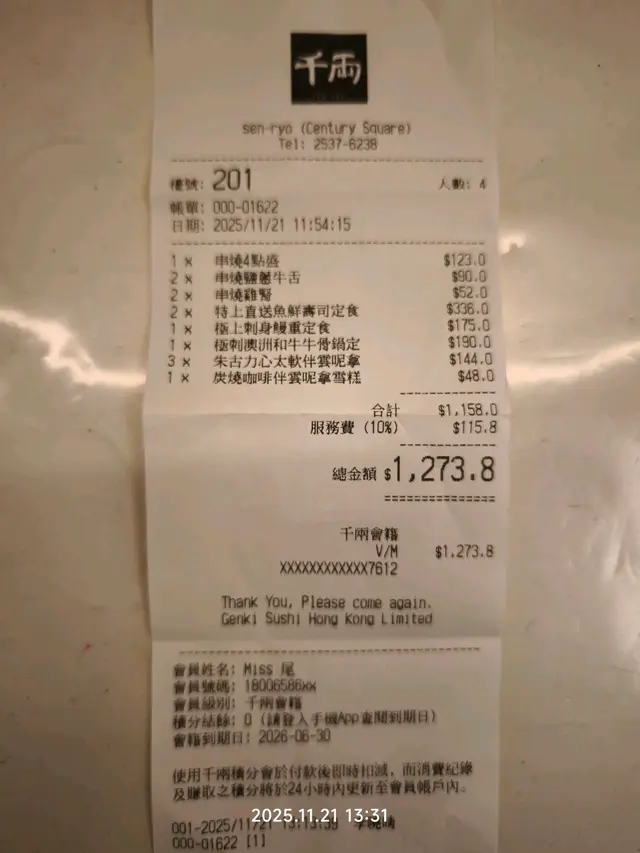千両 (世紀廣場) (中環) 網址: https://s.openrice.com/QrbS0QdW100 地址: 香港中環德己立街1-13號世紀廣場3樓 電話: +852 25376238