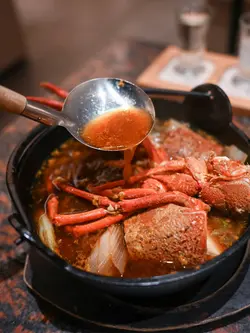 最近天氣轉凍,約咗個日迷老友,聽聞冬の味覚限定菜式回歸,專攻時令海鮮同清酒。尖沙咀分店環境幾寬敞,暗黑系裝潢加昏黃燈光,幾有格調。話明冬日限定,梗係要試勻成 set 先對得住自己個胃同個 wallet!先講壽司同刺身部分。大吞拿魚腩配法國魚籽醬壽司,魚腩油脂真係豐富,入口即化唔係講笑,魚籽醬嘅鹹香同魚油撞出嚟個效果幾驚艷,$52/件算係交到貨。松葉蟹腳配柚子醋啫喱壽司,蟹腳肉夠鮮甜,柚子啫喱清新得嚟唔會搶味,$38/件性價比唔錯。至於煙燻平政兩食,個煙燻效果真係有戲,一開蓋煙霧瀰漫,打卡一流📸!配醬油忌廉個配搭幾新奇,平時唔係成日食到,魚肉嫩滑得嚟帶微微煙燻香,值得一試。主菜方面,龍蝦二食個概念幾有趣,龍蝦刺身切得薄身,口感爽滑鮮甜;個龍蝦味噌鍋湯底濃郁,飲完成個身暖笠笠,不過如果龍蝦肉可以再多啲就更加完美。銀鱈魚酒粕燒同五日市豚肉酒粕味噌鍋都係用咗清酒酒粕入饌,銀鱈魚外皮燒得香脆,魚肉保持到嫩滑,酒粕香氣幾突出;豚肉鍋個湯底加入甘酒之後更香甜,豚肉片份量都算足,凍冰冰天氣食真係幾舒服。最後個職人手作咖啡奶凍同特撰清酒體驗為成餐作結。咖啡奶凍咖啡味香濃,質地滑溜,略嫌甜咗少少,但整體水準唔錯。清酒體驗三款由淡到濃,配搭唔同菜式幾有心思,尤其推薦配鍋物同燒物,$88試到三款清酒真係幾抵玩!總體而言,今次冬日限定有驚喜,環境同食物水準都 keep 到,尤其係煙燻平政同清酒體驗值得一讚。不過部分菜式價錢進取咗少少,如果想平平地試可以集中喺壽司同鍋物。今次體驗整體滿意,個胃表示收貨👌,下次可以再encore個清酒體驗!…查看更多