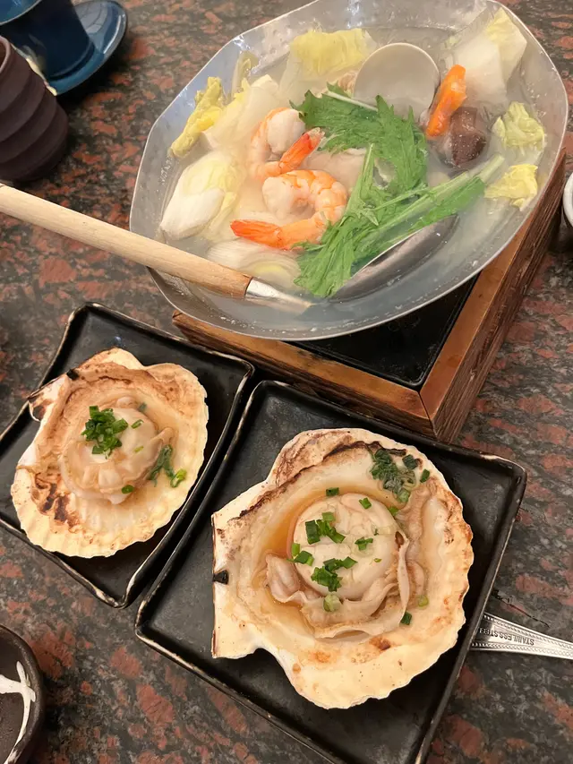 最近天氣轉凍,約咗個日迷老友,聽聞冬の味覚限定菜式回歸,專攻時令海鮮同清酒。尖沙咀分店環境幾寬敞,暗黑系裝潢加昏黃燈光,幾有格調。話明冬日限定,梗係要試勻成 set 先對得住自己個胃同個 wallet!先講壽司同刺身部分。大吞拿魚腩配法國魚籽醬壽司,魚腩油脂真係豐富,入口即化唔係講笑,魚籽醬嘅鹹香同魚油撞出嚟個效果幾驚艷,$52/件算係交到貨。松葉蟹腳配柚子醋啫喱壽司,蟹腳肉夠鮮甜,柚子啫喱清新得嚟唔會搶味,$38/件性價比唔錯。至於煙燻平政兩食,個煙燻效果真係有戲,一開蓋煙霧瀰漫,打卡一流📸!配醬油忌廉個配搭幾新奇,平時唔係成日食到,魚肉嫩滑得嚟帶微微煙燻香,值得一試。主菜方面,龍蝦二食個概念幾有趣,龍蝦刺身切得薄身,口感爽滑鮮甜;個龍蝦味噌鍋湯底濃郁,飲完成個身暖笠笠,不過如果龍蝦肉可以再多啲就更加完美。銀鱈魚酒粕燒同五日市豚肉酒粕味噌鍋都係用咗清酒酒粕入饌,銀鱈魚外皮燒得香脆,魚肉保持到嫩滑,酒粕香氣幾突出;豚肉鍋個湯底加入甘酒之後更香甜,豚肉片份量都算足,凍冰冰天氣食真係幾舒服。最後個職人手作咖啡奶凍同特撰清酒體驗為成餐作結。咖啡奶凍咖啡味香濃,質地滑溜,略嫌甜咗少少,但整體水準唔錯。清酒體驗三款由淡到濃,配搭唔同菜式幾有心思,尤其推薦配鍋物同燒物,$88試到三款清酒真係幾抵玩!總體而言,今次冬日限定有驚喜,環境同食物水準都 keep 到,尤其係煙燻平政同清酒體驗值得一讚。不過部分菜式價錢進取咗少少,如果想平平地試可以集中喺壽司同鍋物。今次體驗整體滿意,個胃表示收貨👌,下次可以再encore個清酒體驗!…查看更多
