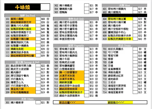最新餐牌