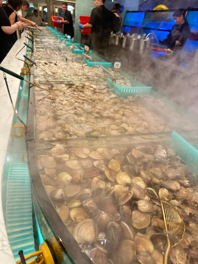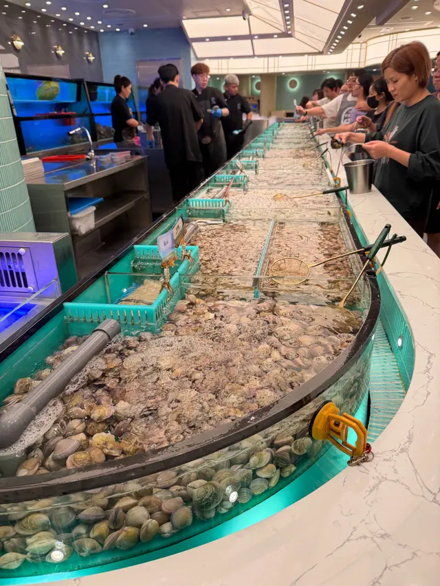 睇完之前有篇街知巷聞嘅報道,燃起我鋪海鮮火鍋癮,所以決定與朋友二人搵晚去咗旺角MOKO新世紀廣場嘅千海海鮮火鍋放題,展開一場任食海鮮大戰。由旺角地鐵到Moko 再拎飛等位,前後唔使10分鐘,十分方便。夾啱食晚上8:15嘅場次,可以食足2小時45分鐘,時間十分充裕。一入門迎面而來係舖面寬敞、卡位多到數唔晒,枱距仲闊過一般火鍋店。拎住個鐵桶去揀海鮮,一眼望過去海鮮BAR,足足十米長,藍蟹、蜆、鮑魚、大頭蝦、蠔、螺,應有䀆有,俾我地實現真正嘅:海鮮自由!餐廳職員補貨極快,見邊樣少咗啲就即刻補,完全唔使驚熱門海鮮會搶唔到。隻隻都十分生猛紮紮跳,眼見有啲男士都俾啲海鮮嚇親,哈哈。海鮮隔離就有大量熟食、甜品、飲品,蒸點心,沙律等等都一應俱全。其中必食:焗榴槤,榴槤焗完無咁大陣味仲好香甜,朋友都食咗4/5舊。除咗自助區,QR code可以點咗澳洲M5和牛、美國牛肩胛片、鐵板鵝肝多士、川味燒鮮蠔等熟食。牛肉雪花唔錯,燒蠔久夠惹味。可以食多幾round飲品方面更係齊備咗日式清酒、梅酒、啤酒、益力多、台式珍珠奶茶、檸檬汁,應有盡有,朋友係酒鬼都飲到好開心。配菜區任攞各種蔬菜,連羽衣甘藍、豆苗等都有,牛柏葉、丸類、菇類總之打邊爐諗到想食嘅,呢度都一定滿足到。最後食返啲甜品做Ending,Häagen-Dazs雪糕、楊枝甘露、Tiramisu、芋頭牛奶布甸、巴斯克蛋糕、自家製軟雪糕,每一樣都好吸引。成晚由8點入座食到差不多11點,我地食到捧住個肚行出餐廳,真係好滿足。如果都想挑戰「極上海鮮自由」同埋熟食、甜品任食嘅盛宴,千海都一定唔會令你失望。食物美味又豐富,唔使拎返屋企嘅,即場享用最啱feel。…查看更多