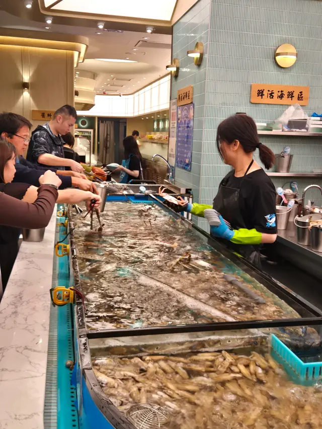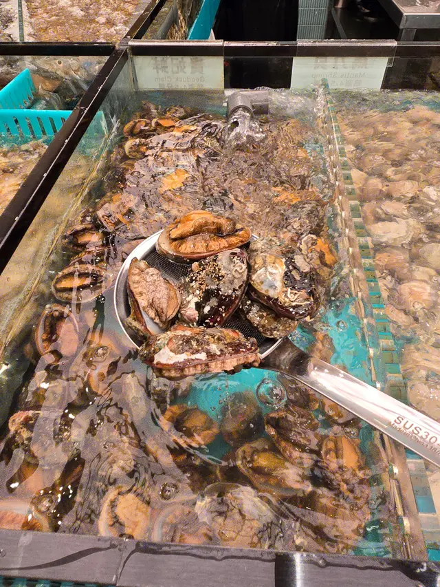 千海水產海鮮火鍋放題店, 人氣亮點是自助即撈海鮮, 無限量任撈任煮, 火鍋店仲會不停補貨。進入餐廳內見到超大水池,放滿各種生猛海鮮等你撈, 看到有花蟹、基圍蝦、 瀨尿蝦、鮑魚 、沙白等, 已經急不及待想去撈, 想食幾多就自己撈 , 有專人幫你清洗及斬件,夠曬貼心 。 除了豐富的海鮮, 還有任點肉類、 精選點心、廚師推、 火鍋配料、串燒、揚物、 飲品 、 雪糕及甜品等, $308 - $348 ,2小時內任撈任點任食, 好味又扺食, 令人大飽口福,吸引了不少粉絲支持,難怪每晚訂座瘋狂爆滿。湯底:揀咗金湯花膠雞湯底, 金黃的湯底 十分濃郁鮮甜, 滋補油養顏 ,用嚟做火鍋湯底認真一流。即撈海鮮:三點花蟹柔滑的蟹肉, 十分鮮甜,讓人享受到海鮮原汁原味的鮮香。 沙白挺身的新鮮蜆肉 , 鮮甜好吃, 完全冇沙。新鮮鮑魚 新鮮肥美的連殼鮑魚,輕輕力已經好容易咬開 , 肉質好滑溜, 入口 Q 彈,鮮味十足。推介:鵝肝多士外脆內嫩滑, 入口即溶的口感, 配上香脆多士及酸酸的香醋汁,令人一吃愛上。金銀蒜蓉蒸蠔巨型飽滿的,鮮甜滑溜, 加上濃郁惹味的蒜香, 認真舐舐脷。西京燒比目魚 比目魚的魚肉嫩滑細膩, 伴隨西京醬的甜香, 讓人喜歡。 蒲燒鰻魚 鰻魚肥美飽滿,鮮香彈牙, 魚油豐沛 , 甘香的魚油填滿味蕾 , 十分好吃。美國牛肩胛肉澳洲m5和牛澳洲羊肉片美國豬梅肉片薄切的牛肉及豬梅肉片,油花滿佈, 顏色艷紅, 油脂豐富,放入湯中灼熟一陣即可, 入口柔軟嫩滑。王牌燒乳鴿王乳鴿王皮脆肉嫩 , 鹹鮮十足,香口入味。烤榴槤燒烤後的榴槤, 比直接生吃榴槤更加甜, 口感咁嫩滑 , 味道更突出, 必食推介。每一隻大閘蟹即叫即蒸的時令大閘蟹 ,有澎湃金黃的蟹膏, 蟹膏香滑濃郁,像鹹蛋黃的甘香,蟹肉鮮嫩。海燕窩椰汁燉木瓜木瓜果肉香甜,燉至軟綿,海燕窩滑不溜口, 伴隨淡淡的椰香 ,滋補又養顏 。甜品區最後食埋我最鍾意嘅 häagen-dazs雪糕, 及自家製甜品 ,認真大滿足! …查看更多