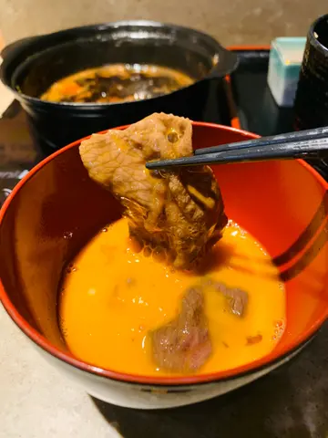 今日阿B黎接我收工〜諗住難得過海出到嚟,不如行去銅鑼灣 食番餐好嘅先番去〜但係可能最近晚市都比較靜好多都已經閂左門或者準備閂門,行到我筯歇力疲時就見到哩間餐廳啦。本來見到入面得一兩個客人,都擔心佢準備閂門,但當位女服務員見到我哋嗰時,對我地微笑同用手勢表示歡迎進入,我即刻鬆咗一口氣〜〜終於搵到嘢食啦!! 而且日本餐廳,啱晒我同阿B❤️Menu 上推介嘅幾乎都係牛 (唔同種類嘅燒牛、牛肉丼、壽喜燒...),好彩我地都鍾意食牛冇乜大問題,如果有唔食牛嘅朋友都有少少其他種類選擇,不過就唔係推介。我就揀咗我又鍾意食Menu上又特別推薦嘅壽喜燒,阿B就幫大家試吓佢個豚肉丼〜壽喜燒個湯底味道幾好,牛肉分開放鍾意幾時淥都得,唔驚啲牛會老晒,另外仲有一碟菜同烏冬,整體份量剛剛好,啲牛亦好鮮牛味!