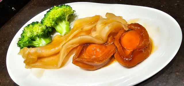 蠔皇鮑魚扣花膠鮑魚肉質細緻但保持彈性,柔嫩多汁。花膠膠質豐富,蠔皇濃而不膩,香氣撲鼻,充滿中式滋補香,味道層次分明。