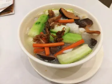 朋友係灣仔癲拿,見到門口餐牌標示<一蚊系列>,所以在此晚餐。 你精佢唔笨,一蚊只能選一次,茶位15蚊,花生15蚊。 在几款一蚊系列,選擇一蚊燒鵝,另加三寶,二個靚仔,就是今日的晚餐。燒鵝例牌 2-4人可享例牌一份,真身接近4份1隻。2人享用就更抵。玻璃盤盛載,以小火加熱,伴以蘿蔔。燒鵝皮肉分離,厚身的燒鵝皮脆,醮酸梅醬,配上白飯,變成燒鵝皮壽司。燒鵝皮的油香,在白飯的加持下,咬呀咬,慢慢㗳,留在味蕾的時間延長了。靚的燒鵝皮,是值得慢慢嘆。鵝肉,也要照啃。蘿蔔酸度不明顯,帶著淡淡淡<xx油苷>苦味。間中來一口,可以消除燒鵝的油膩。原隻菠蘿咕嚕肉 菠蘿殼半個,菠蘿肉,咕嚕肉,椒,辣椒,洋蔥。 菠蘿片呎寸不統一,菠蘿肉紋理清晰。咕嚕肉包漿不算太厚,皆為肉片 沒有骨。白汁明蝦球 白醬酸度不高, 炸蝦大大隻,厚厚的炸皮梘水味不明顯,蝦仁肉質脆口,唔霉。清蒸富貴班 正常蒸魚的味道。晚市的甜品~紅豆沙。埋單521個大洋。茶位係每人15蚊!果個細細碟花生收15蚊!!!!!!…查看更多