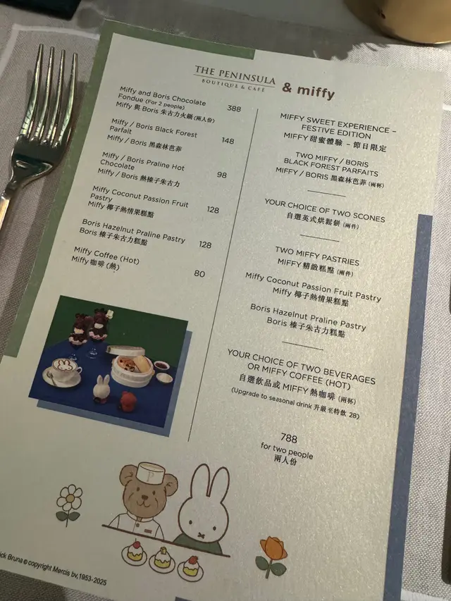 從 social media 得知酒店精品店與咖啡廳推出miffy聖誕限定,第二日就打電話去訂位。訂一人座但得到round table(張張都係round table),非常高興,仲有miffy同boris背墊,可以打卡,擺背脊都舒服。是日只有黑森林芭菲同榛子朱古力,對一人胃來說好可以。因為冇去到中秋節嘅crossover,所以好想叫一杯飲品,所以叫齊兩樣。Miffy朱古力芭菲Miffy造型嘅馬卡龍好得意,亦都係呍尼拿夾心。芭菲除咗有雙球雪糕,仲有朱古力杏仁餅同朱古力蛋糕,食朱古力雪糕可夾埋blackberry 來食,可以食晒亦不會太膩。Boris榛子朱古力唔記得影相,砌返個型補拍。成件事有層次感,但並不是平日輕易嚐到的榛子味,感覺很貴格,亦很喜歡boris馬卡龍的朱古力味道。…查看更多