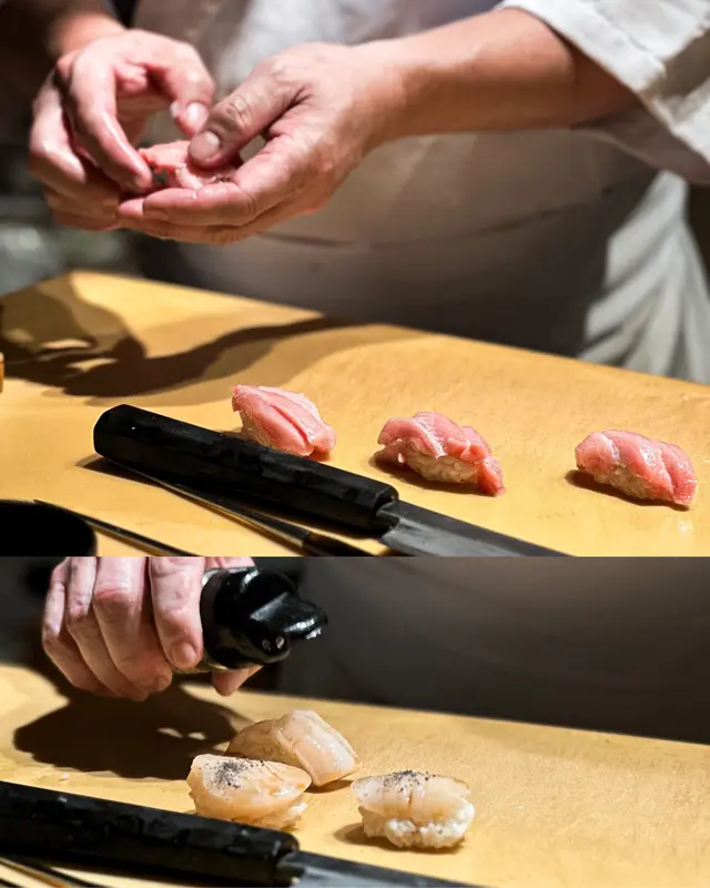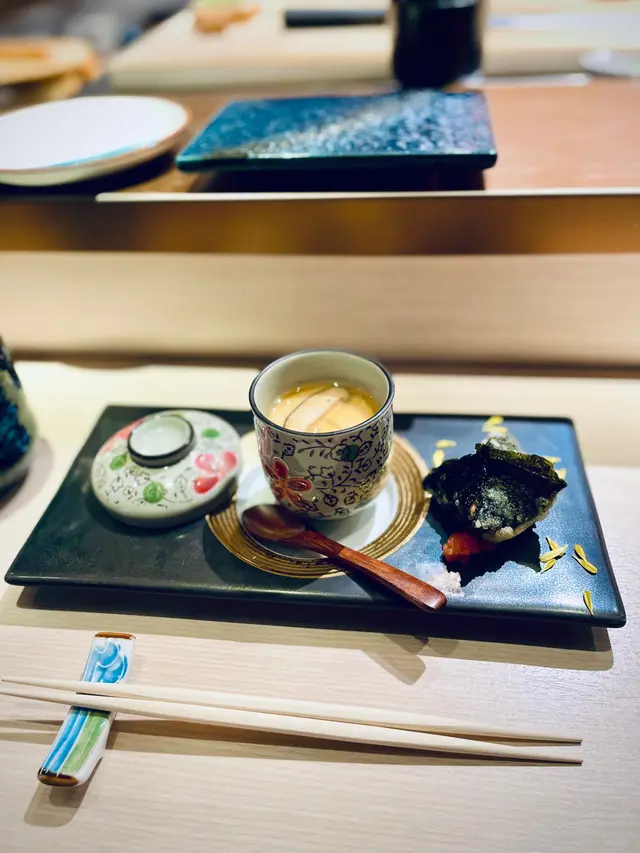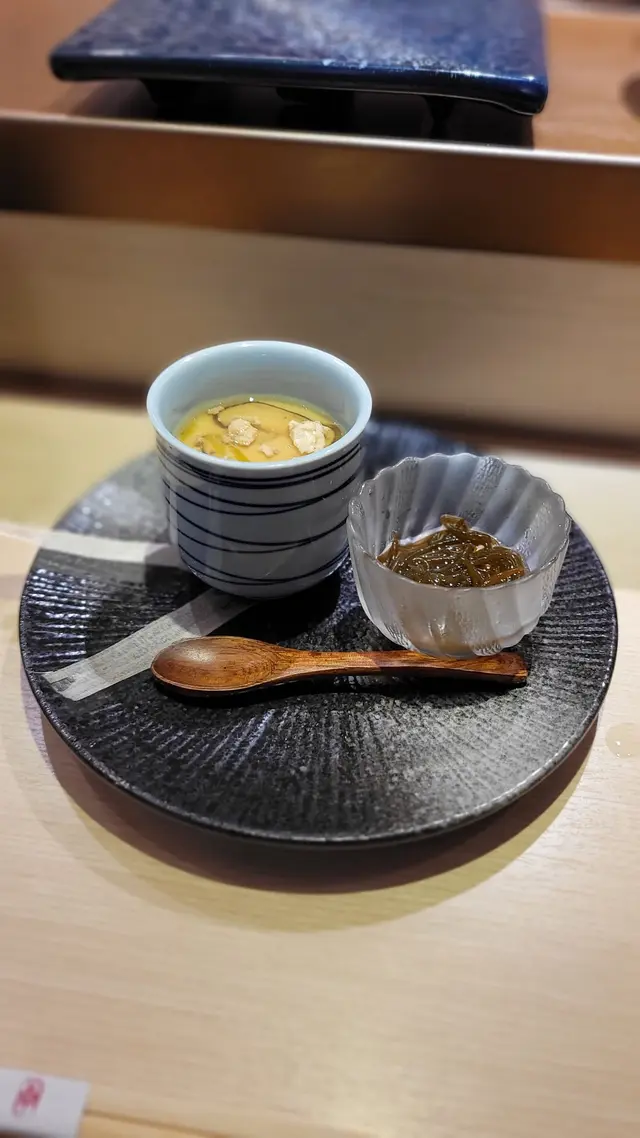 又嘆又吸引,是近期一場嘆到盡無與倫比的一餐。頭盤乃精緻的魚慕絲、栗子以及螢光魷魚,小巧玲瓏的並排在碟子上。魚慕絲近乎無味,要加酸汁豉油;栗子甜硬,卻非小人杯茶;至於螢光魷魚質感是對辦的,無奈鹹到難以入口。刺身到壽司的可觀性就高呢得多,不管溫度與及軟熟度都可稱為一級棒!由淡到濃的演化,廚師即席在客人面前燒、握、切,簡直是一場完美的好戲!不能忘了的熱物,煎帶子珍珠荀配海膽芝士汁,何其的滋味!海膽芝士汁實在太正,濃郁而不膩。而壓軸的魚湯及雪糕均可以各司其職。又一場嘆到盡的體驗~…查看更多