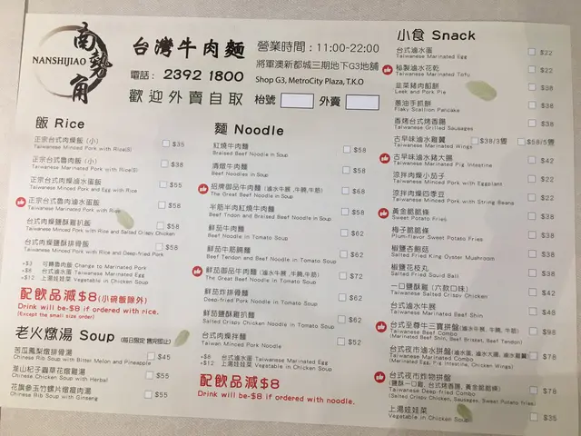 南勢角 (將軍澳) 網址: https://s.openrice.com/QrbS0szC400 地址: 香港將軍澳貿業路8號新都城中心3期地下G3號舖 電話: +852 23921800