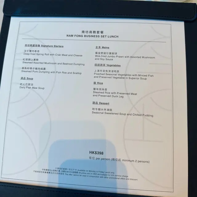 🍽️ 南坊 數碼港艾美酒旗下新派粵菜🥢裝潢走中西合璧路線✨高樓底配落地大玻璃🙌光猛開揚又帶啲典雅⚜️ 對任海景同山景!適合同屋企人一家大細黎食🥡✨前菜 1. 南坊叉燒蜜汁叉燒係鎮店之寶🔥用半肥瘦梅頭肉🤏醃足24小時再慢烤🫶外層焦香帶蜜糖脆邊🍯海蜇厚身爽脆🌊青瓜醃得入味但保留爽口✨酸辣醒胃🫶前菜嚟講超開胃! 🍲 湯品 3. 姬松茸花膠燉赤肉老火湯金黃清澈🍲飲落濃郁🤏花膠厚身軟糯✨精華全部溶喺湯裏🤏非常暖胃🍤 主菜 4. 碧綠彩燈炒蝦球斑球斑球同蝦球都好彈牙🐟🍤彩椒同蘆筍炒得翠綠爽甜✨鑊氣夠又唔油膩🤏 5. 杏汁銀杏腐竹浸時蔬清淡但絕唔寡淡~菜心浸喺奶白色杏汁湯底🥜腐竹吸滿杏仁香🤏整體溫潤帶杏仁香6.金腿汁鮑魚瑤柱雞粒燴絲苗鮑魚口感爽彈✨瑤柱絲鹹鮮帶甜🤏雞金腿汁濃郁但唔死鹹🙌絲苗飯吸盡精華仲保持粒粒分明👍🍯 糖水 7. 紅棗桂圓糖水紅棗去核唔燥✨桂圓肉厚甜香🤏加入杞子同片糖慢熬🥘湯色深紅透亮🤏飲落溫潤滋補…查看更多