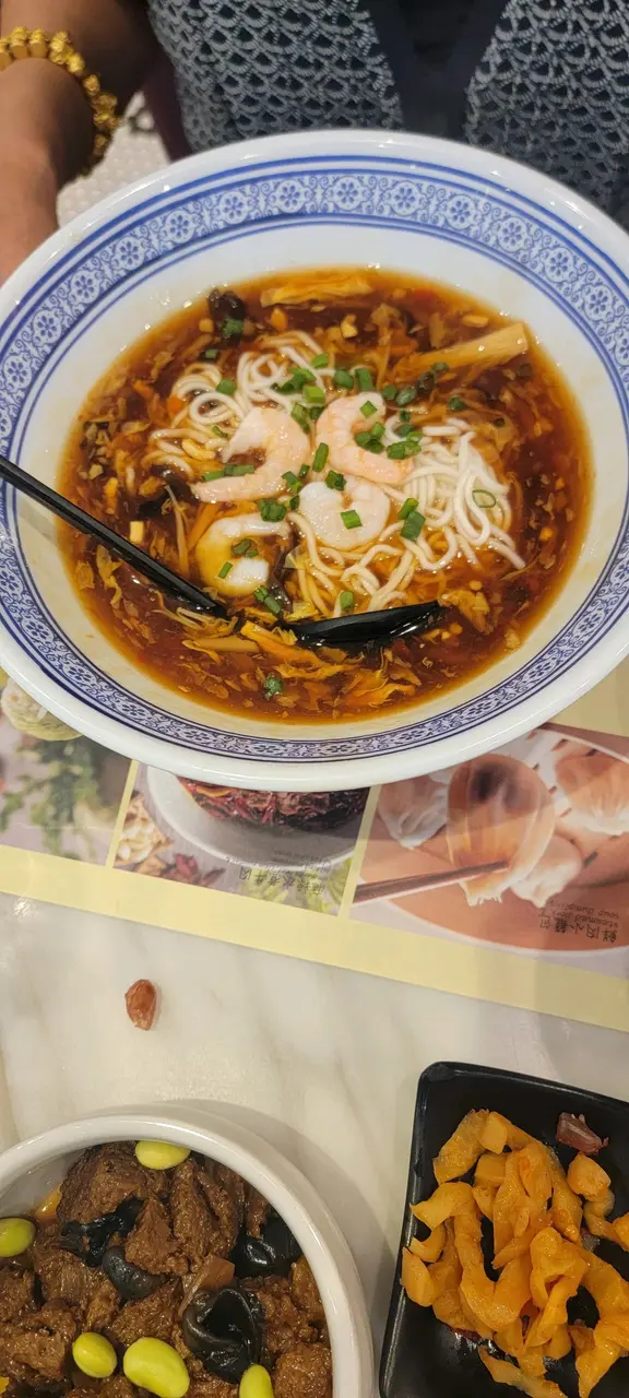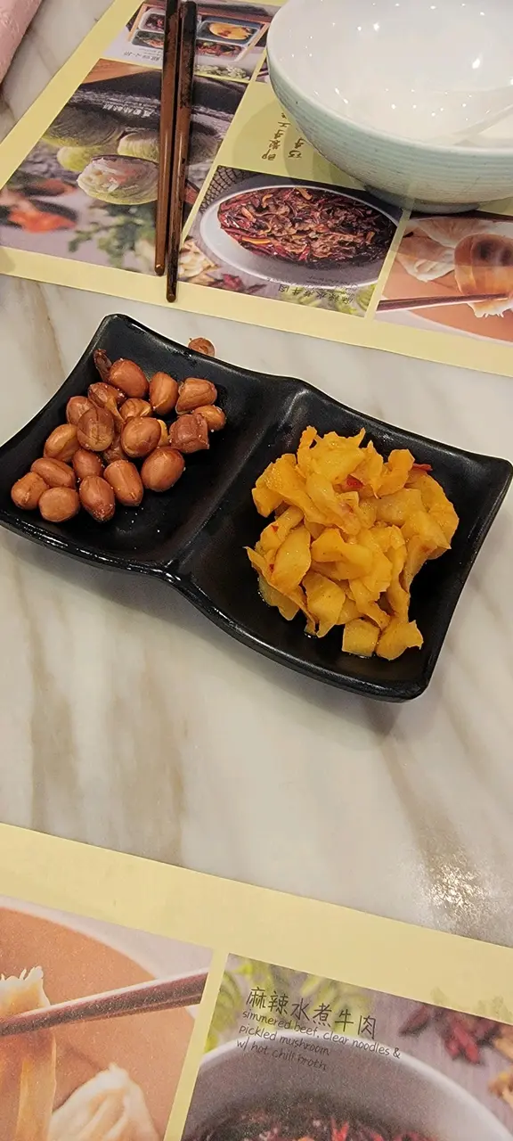 呢日同朋友食飯聚一聚,選擇左愉景新城南小館。午飯時間尚算清閒,唔洗等位攞飛即入。同朋友每人選了一個精選午市(一人套餐)先來前菜有花生同菜甫。送到黎冇可能唔食都要收錢架朋友要左紅燒牛肉麵配小籠包,而我自己就要左重慶擔擔麵配四喜烤麩前菜味道ok,主食未黎當開胃菜先紅豆薏米水。味道朋友話ok,但我就唔太鐘意重慶擔擔麵麵身彈牙,湯底太油唔太喜歡紅燒牛肉麵朋友話幾好食四喜烤麩呢個我鐘意,入面既毛豆麵根好有咬口好入味小籠包3隻皮薄多汁…查看更多