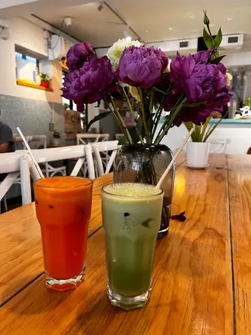 🔸香蒜白酒蜆意粉 Pasta Vongole $115呢個意粉真係好有驚喜,鍾意食蒜嘅會覺得好幸福,啲蜆嘅份量仲要好多🔸香濃蝦汁海蝦意粉 Shrimp Pasta $130*相較*呢個比較失色,必須要強調只係相較,其實單睇呢個item都係好好的haha,但我一方面見佢話「濃汁」,而家實際上碟意粉上枱嘅色澤真係好靚,所以我一心以為係超入味嗰種,但結果香蒜蜆意粉搶咗風頭XD 同樣地雖然佢收你$130,但份量十份,好多喺市區嘅cafe,同價/甚至貴過佢嘅都冇俾咁多海蝦🔸蜜糖烤排骨配薯條 Roasted Pork Rib with fries $110排骨烤得恰到好處,唔會好乾好柴,啲肉唔會痴實舊骨,好易咬開,蜜糖醬味道亦都夾得好好,鹹鹹甜甜lamlam脷。配菜薯條相信係即炸,所以全部都又熱又脆身▫️Signature Drinks 蘋果 甘荀 薑 $45相信係鮮榨,因為只有咁先會喺上枱嘅時候有咁多泡。加咗薑呢個element令飲品更加有層次,唔係一味甜▫️Signature Drinks 青瓜 雪梨 $45夏日炎炎,呢杯冇得輸,味道就係你想象嘅清爽、清甜,一如意料之內,同樣地相信係鮮榨,所以唔係死甜📌成餐飯如果要評,唯一係節奏,一方面可能因為大家入得去就係想chill吓想放慢落嚟,二來店入面人手唔係咁多,所以上菜速度頗慢,item之間亦隔得有啲耐。如果喺趕船期/ 比較肚餓想好快補充能量嘅可能會扣啲分,不過我覺得係worth the wait^^…查看更多