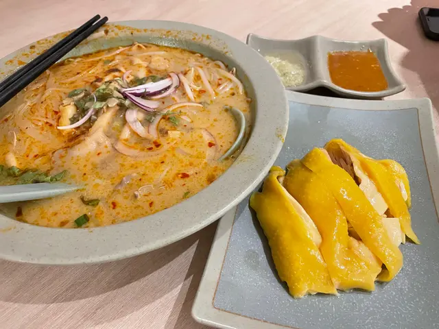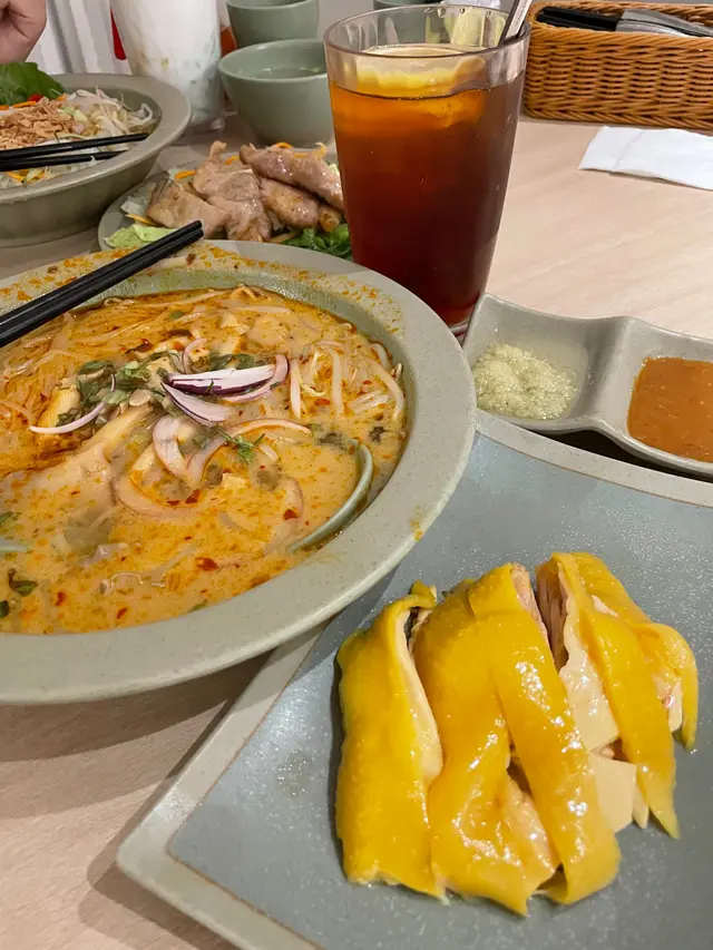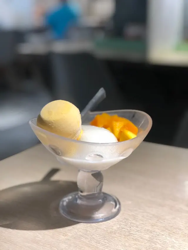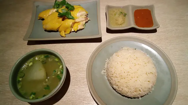 呢間餐廳啲海南雞飯都幾受歡迎,我見到隔離枱有兩個小朋友都點咗每人一個海南雞飯來食。呢個海南雞,雞的份量都吾小,大約有十件,其中有幾件會特別多肉嘅。醬汁方面就會有兩種,一種係蒜蓉,另外一種就係甜甜地辣辣地嘅醬汁。呢個飯仲會包咗一個冬瓜湯,另外仲會包咗一個飯,個飯係雞油飯來的。芒果糯米飯,芒果個份量大約有半個芒果,跟住就加咗啲椰汁喺嗰啲糯米飯上面,啲糯米飯口感系煙煙韌韌咁。呢間餐廳有兩層,下面嗰層大約有十張枱。…查看更多