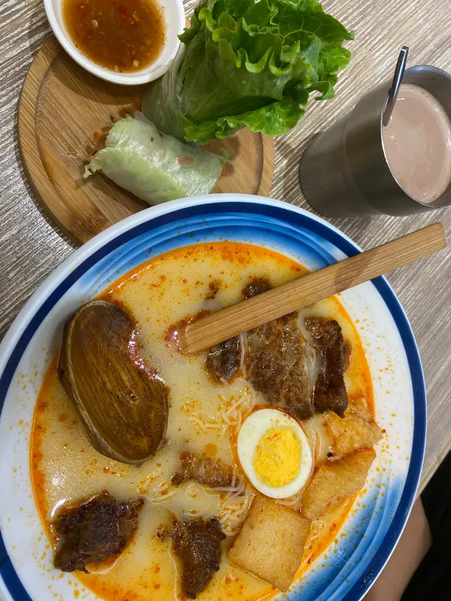 今日黎到佐敦主打星馬菜既南洋餐廳,店舖面積唔大,但非常乾淨企理,牆身亦有代表星加坡既油畫可以打下卡✨✨岩岩過左 lunch time,佢地有唔同既 tea set,我就點左香茅豬扒斑蘭椰漿飯 $48,豬扒都醃得幾香煎得岩岩好,而且肉質好淋但又唔係話用梳打粉那得好勁個種,不過下午茶果然係份量都幾細下😂😂😂我當正餐黎食就唔係好夠飽,不過勝在都好食既😝朋友就揀左海鮮喇沙摻摻 $45,個湯底都唔太味精或過咸都可以飲,有人種麵撈埋一齊,麵既份量就岩岩好夠女仔食,面頭有蝦,蛋,魚蛋,蟹柳,豆卜,都幾豐富既〜服務就正正常常,如果食物呢個價錢多返少少會開心啲😆晚市見到單點有好多唔同菜式,或者搵日都可以再挑戰下…查看更多