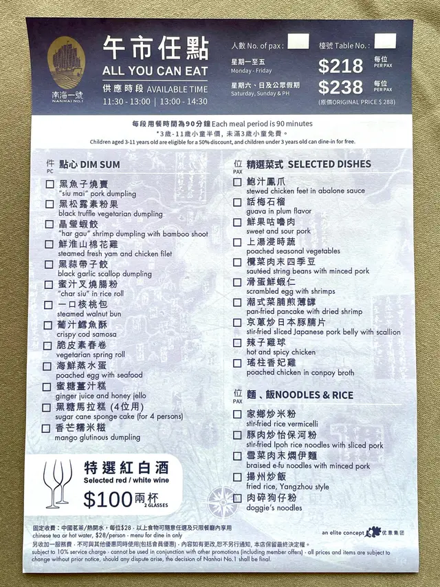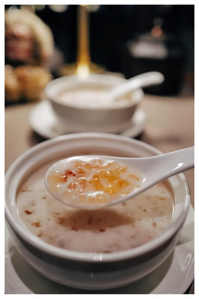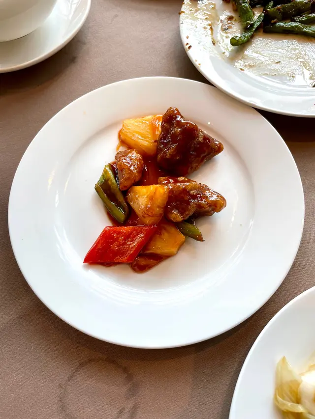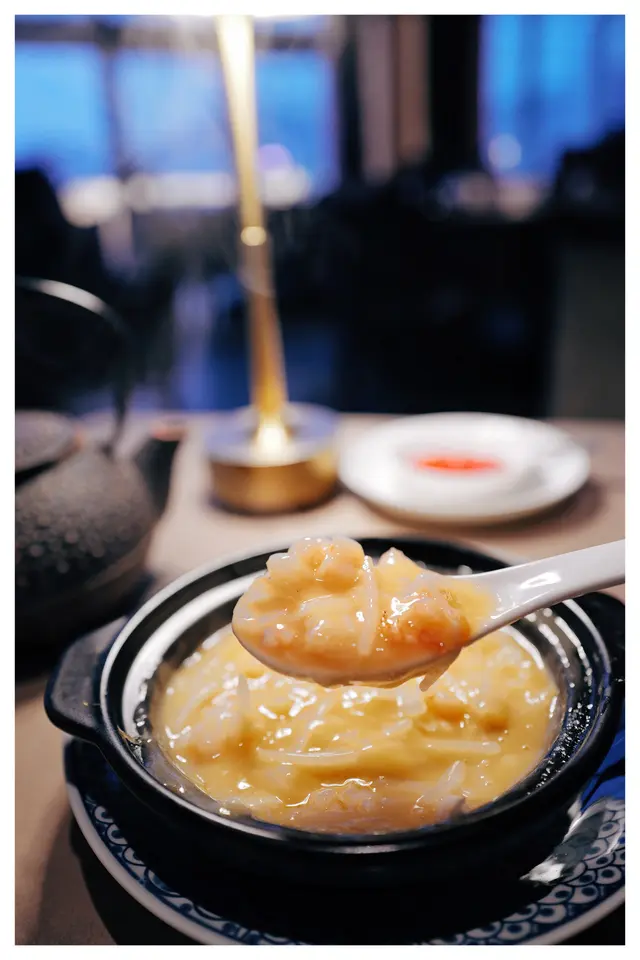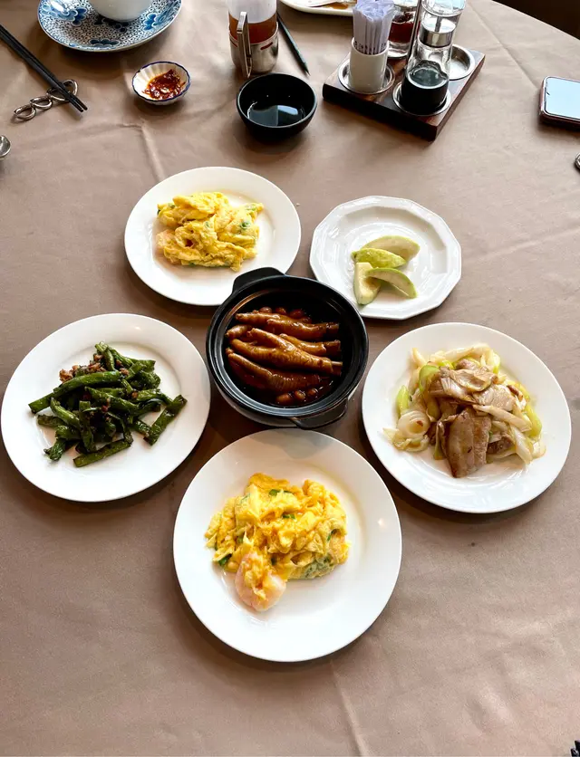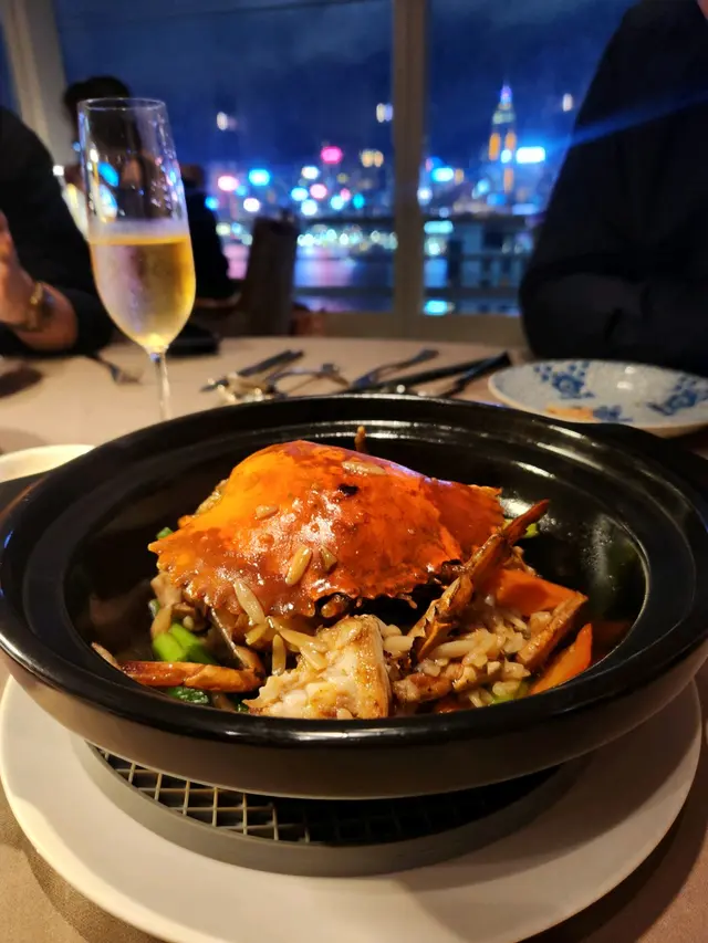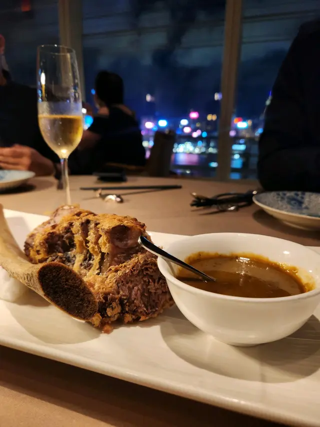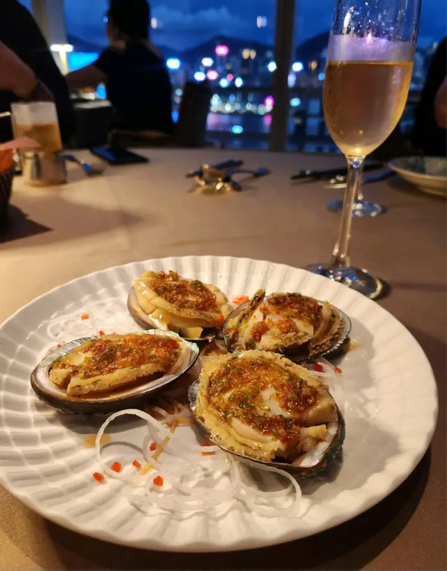今天晚上和朋友一起聚會,朋友介紹這間餐廳,環境優美,可以飽覽漂亮的維港夜景,我們一行八人點了$680/位的魚翅鮑魚餐,另單點金榜醬點大蝦,餐前小食的木薯片挺好吃,茶水則不過不失。金榜醬點大蝦配饅頭:全場最美味的食物便是它,朋友果然沒介紹錯,大蝦爽口彈牙,最出色是它的醬汁相當鮮甜美味,令到整道菜式錦上添花,更上一層樓,饅頭沾上醬汁後更變成了人間美食。接下來便是$680/位的魚翅鮑魚菜式,頭盤是話梅石榴、蜜汁叉燒和海蜇頭,石榴味道鹹鹹的,有朋友說很像「蘋果加了鹽」的口感,怪怪的感覺,但有朋友卻很喜歡,叉燒的肉質雖然都算柔軟,但是卻不夠肥美,焦香更欠奉,調味亦只是正正常常,和街市/普通酒樓吃到的不相伯仲,沒有什麼特別,海蜇則是正常的貨式。南海砂鍋翅:個人完全不理解為什麼砂煲翅中要加入芽菜..魚翅的味道有點腥,不過湯水的調味很出色美味,每一口都很鮮甜,蝦肉亦爽口彈牙,如果沒有了芽菜應該更好喝。蠔皇原隻鮮鮑魚:鮑魚很大隻,口感微微煙韌彈牙,肉質飽滿,鮑汁的調味亦相當不錯,但個人認為它吃下去的味道,有點像罐頭鮑,不過以上純粹只是個人和朋友的感覺。黃椒醬蒸斑球:黃椒醬是辣的,怕辣的朋友要小心,斑球的肉質幾柔軟嫩滑,但是卻沒有什麼味道,黃椒醬的味道只是停留在表面,味道只是一般。紅燒乳鴿:乳鴿是即叫即炸,但是明顯不夠肥美,肉質比較瘦削,沒有什麼肉可以吃,味道則正正常常吧。濃湯黃耳野菌時菜:就是正常一般的上湯浸菜,沒有什麼特別,吃了這麼多肉和海鮮是時候清一清腸胃。龍蝦湯泡貴妃飯:這是全場第二出色的食物,龍蝦湯十分香甜可口,每一口都嚐到龍蝦的鮮甜味,泡飯亦完美滲透了龍蝦的精華,美中不足泡飯只是微暖,如果熱一點會更好吃。合時糖水:糖水是椰汁西米露配桃膠,味道只是一般,個人還是更喜歡酒樓傳統的紅豆沙。最後說說環境和服務,環境的確是很漂亮的,但是我們不是坐在窗邊的位置,所以便未能欣賞維港美景了,另外服務很一般,不會主動加茶水,想開多一壺滾水,要叫很多次服務員才拿給我們,但是收盤子卻很積極...你收這個價錢,卻提供普通酒樓的服務,坦白說體驗很一般。價錢方面,魚翅鮑魚餐$680/位,金榜醬煮大蝦$138/份,木薯片$56,茶水$28/位,餐廳設有加一服務費(套餐的服務費以原價計算),8人總共是$7060,每人平均$882.5~總結來說,今次的食物味道都算不錯,但是美味程度只是比起普通酒樓出色一點而已,沒有驚艷的感覺,環境由於不是坐窗邊位置,所以沒有什麼特別,最重要服務質素只是一般,應該很多侍應只是兼職炒散,餐廳真的要改善一下,畢竟你的餐廳價錢定位真的不便宜。…查看更多