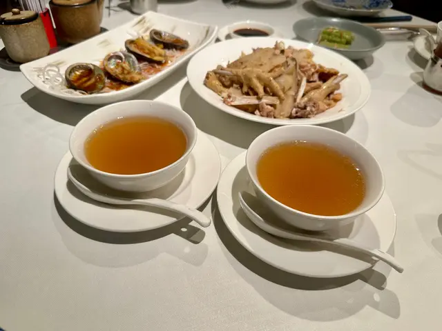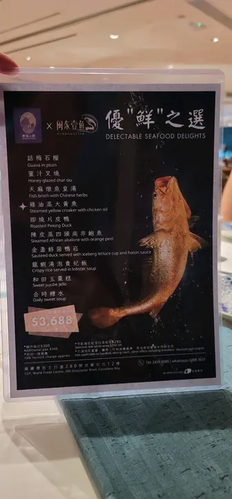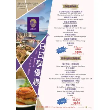 🐑蟹皇翅-味道好好,蟹黃味濃,蟹肉非常多,推獻功夫好,冇瀉水,可惜嘅就係翅少咗啲啦🐑桂花糯米蓮藕-桂花味十分突出,桂花糖少許甜,味道剛好冇冚過蓮藕同糯米嘅清甜,嗰種軟糯食落去好舒服,一個字,高🐑陳皮話梅萵筍-萵筍爽脆清甜,先用高湯喂過,再用話梅水醃製,上碟加上切絲九製陳皮,越食越回味,係一流嘅開胃菜🐑蠔皇原隻鮮鮑魚-蠔皇汁十分出色,汁底以蠔油為主,加上湯煮成,鮮味至極。能將鮮鮑炆成有乾鮑嘅質感,我心目中有兩個名字,其一係沙田利苑,其二係九龍城食得妙,今日起有等三個名嘞:南海二號🐑XO醬白玉蒸斑球-豆腐、星斑片、雲耳仔,加埋XO醬原碟蒸,上枱時碟身仍熱,倒走蒸魚水之後,加蔥花輕輕灒油,再加入由豉油、蠔油、鮮醬露調配嘅醬汁,確係美妙。XO醬夠搶味,豆腐同魚味亦十分夾,可惜班片蒸老咗,魚身咁薄,蒸少一分鐘就已經爭好遠,呢個要多加注意🐑茶燻乳鴿-呢個係滷燻乳鴿,先滷後燻。乳鴿肉質細嫩,滷汁入味程度去到入骨,用香片茶做煙燻料,茶燻味道不斷喺我口入面盪漾,久久不散🐑野菌腐皮時菜-湯底呈乳白色,係用高湯加腐竹滾出嚟嘅,腐竹豆香相當濃郁,相信呢個就係相當成功嘅因素,白菜仔滾得剛好,保持脆綠,腐竹、白菜、菇菌相當夾,係渾然天成嘅一個出品🐑龍蝦湯泡貴妃飯-龍蝦湯底味道都夠濃,可惜脆米嚟到嘅時候已經凍咗,加入湯入面嘅時候,欠缺一種視覺同聽覺效果,呢個同利苑比較稍遜一籌🐑百合薏米腐竹糖水-佢腐竹嘅來貨真係好靚,甜品一開蓋,豆香馬上四溢,薏米煲到爆晒花,夠軟糯,百合後加,保存佢嘅鮮脆度同埋清甜味,呢個係要靠本身糖水調味唔太甜,先可以攞到個平衡,去帶出鮮百合淡淡嘅清甜,作為一個廚師,知道自己做緊乜確係相當重要…查看更多