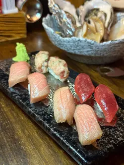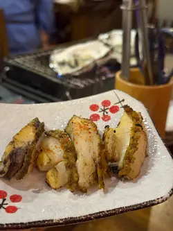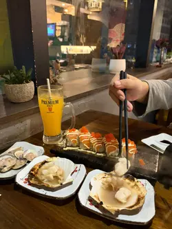 好耐冇去日本,特別掛住日本嘢食,加上朋友生日,決定嚟呢間餐廳慶祝一下。餐牌選擇好多,但呢間餐廳出名係來自日本嘅新鮮水產,咁我哋決定食多啲刺身。✅#鹽燒白鰻+ 羊架+厚切牛舌心串燒好平好高質!特別係牛舌心,軟腍牛肉香,十分好食😋✅#南瀛卷+ 雲丹蚧肉卷有吞拿魚蓉、海膽、三文魚卵,全部都好新鮮好好食🤤雲丹蚧肉卷,係滿滿嘅海膽,下面嘅壽司飯粒粒分味,煙煙韌韌有口感,撈埋魚卵、吞拿魚蓉夠惹味,另外拖羅無根,好肥美,我好鍾意✅#蟹味噌甲羅燒+ 活鮑魚店員會幫你燒,唔使自己郁手,好方便,蟹味噌的鮮香與甲羅燒的炭烤香氣交融在一起,鮑魚仲好新鮮,每一口都散發出濃郁的味道,配白飯一流🤪✅#清酒煮蜆上枱嗰陣熱辣辣,新鮮煮起,感受到肉汁在口中爆發,鮮甜無比✅#海鮮沙律材料十分豐富,見到已經好吸引,沙律菜新鮮脆感和各和海鮮的鮮甜相結合,有一種細緻而豐富嘅味道。✅#白桃梳打+柚子梳打柚子梳打散發著柚子的香氣,入口時帶來一種微妙的酸甜味,非常開胃。白桃梳打則口感清爽,帶有天然白桃香。整體食物質素好高, 十分新鮮,好好味😋…查看更多