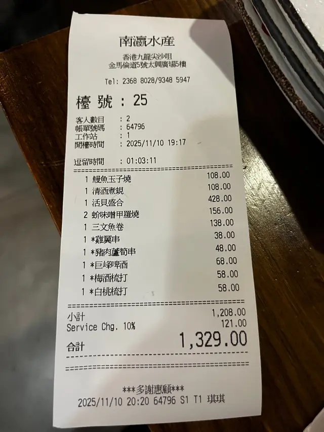 南瀛水產 (尖沙咀) 網上訂座享低至7折優惠兼賺Rice Dollars 網址: https://s.openrice.com/QrbS0hGa900 地址: 香港尖沙咀金馬倫道5號太興廣場5樓 電話: +852 23688028