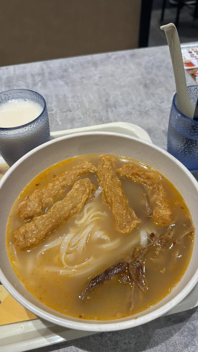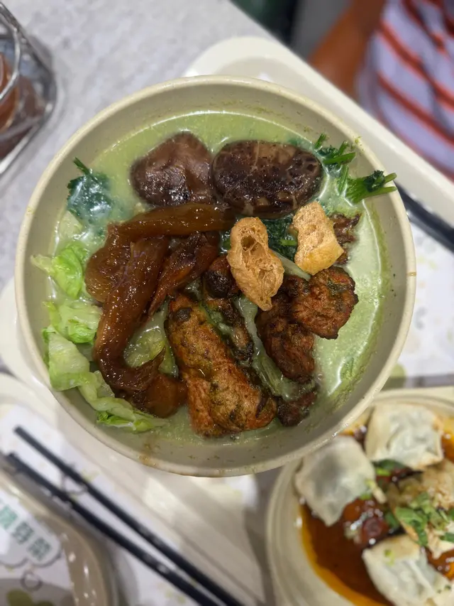 今日過來屯門, 忽然想食南記, 有d酸菜開胃d, 叫左春卷拼冬菇🍄🟫, 今日唔要米線, 要左米粉, 送飲品, 要左熱豆漿, 另外見佢有芫☘️茜主題, 加左$要左個芫茜☘️胡麻醬青瓜🥒, 之後拿個位坐, 可能又係下午茶時間, 所以都坐滿人👍 隔一陣號碼到, 出外拿餐, 然後返位坐, 唔好以為下午茶平d, 份量會少d, 點知完全沒有, 飲啖湯先, 有d酸味, 不過偏淡, 唔係好酸, 辣就完全唔辣, 夾d米粉食, 原來浸左湯, 依個湯底, 米粉其實都幾夾😅, 入面有d配菜, 食落爽口, 食舊冬菇🍄🟫, 唔係無味, 食落有驚喜, 好香好滑👍😍, 之後再夾件春卷, 都算唔錯, 唔係炸到勁老身😆, 食芫茜☘️小食先, 睇相片以為芫☘️茜胡麻醬係混在一起, 点知係中間青瓜🥒一邊芫茜☘️醬一邊胡麻醬, 原來食落幾夾, 真係好fresh, 食落好舒服, 而且二只醬溝埋濃味左, 反而溝淡左青瓜🥒🥒的草青味, 確實有驚喜, 不過加11元價錢都可以接受, 如果20元散叫就有d貴😂之後飲埋熱豆漿, 唔係好重豆味, 但唔太甜少少暖, 飲落幾舒服👍👍確實算係平靚正之選, 唔怪之得敢多人啦😁…查看更多