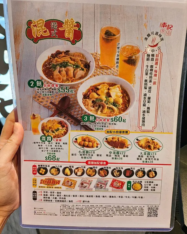 食港式混醬套餐再加12蚊就可以抽玩具盲袋🤑💼 食玩控的本猴🐒 完全係為咗抽玩具而食🪀🔥(為孫仔有得開餐!👶🍼) 3餸麵揀咗粗麵底(佢又要玩車仔麵風,但係落order時冇得揀油麵😲‼️事源我話要油麵,收銀阿姐就不停話冇「幼面」🤷♀️,我話「油」麵喎,佢就話冇啊冇啊🚫,咁啊,唯有要粗麵囉🍜,為咗抽換具冇辦法💸,到我而家po相先見到係默認油麵🙈💢,對一個次次食車仔面都會嗌油麵嘅人嚟講真係幾大打擊💔) 首先,講個混醬湯底,真係為咗混晒所有醬落去🌈,講真美感欠奉🎨,食落口只係覺得好油🛢️,又唔係混醬腸粉果種混醬,食得出有沙茶醬味,但我覺得沙茶醬要打邊爐點🔥傑傑地先至正,而家咁樣撈落個湯底度💦,我唔多接受到依種油淋淋油稀冷冷嘅感覺🥶,南記都係做返麻辣最好🌶️(我諗都係因為我嗌粗麵出事🤡,如果食油麪就會掛汁好多🍝,同呢個醬一定好夾 🤝) 餸: 炸魚蛋(有四粒幾闊綽💰,做到彈牙口感🎾,食咗一粒先記得影📸) 魷魚鬚(正常發揮🦑👌) 滷水豆腐(滷水汁都算入味🧈💦) 跟餐送特飲 芒果冷泡鐵觀音🥭🍵,清清哋唔似糖水🍯,算係台式飲品嘅平替👛 講咁多嘢🗣️,我下次都會再食,因為想換多款玩具比孫仔玩🐒🍽️ …查看更多