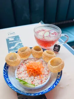 🥰🥳創意驚喜之作|旺角越南菜旺角星馬泰菜咁多,最近深得我心就係呢間充滿創意同誠意嘅「南越南」🇻🇳,讓食客有充滿玩味嘅互動,感受到滿滿嘅誠意,讓食客留下開心嘅體驗,仲要重點係價錢非常之相宜,性價比好高,值得帶埋三五知己過嚟一試再試!先來一杯蜜桃青蘋果玫瑰花茶($38),再食個蟹肉醬脆球餅($68)可以自己參與製作過程,有啲玩味🤗🔥惹火上身鹹檸豬頸肉($70)敲到外脆內軟、表面微甜嘅豬頸肉配埋鹹檸醬,好開胃!店員仲會喺你面前表演「玩火」一定要拎定個相機📷拍片啊!😆👍🏻朋友就叫咗越南特色蛋咖啡($38),再食埋個惹味炸粟米條($48)簡直係越食越肚餓,因為太正!至於個人覺得必點嘅就係新出嘅 南越南蟹肉絲網卷 ($45),呢款越南炸物,廚師將米粉皮炸得非常通透,咬落去亦冇淡淡油膩嘅感覺,非常清新!越式咖喱牛肋條配斑斕椰香飯($88)呢款主食適合愛辣一族,賣相非常Refreshing ,食落都係淡淡好滋味,牛肋條炆得非常入味同埋軟腍,入口即溶嘅感覺!…查看更多