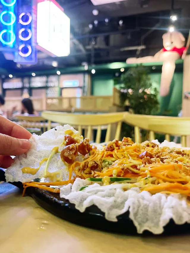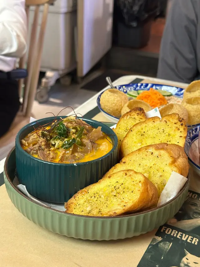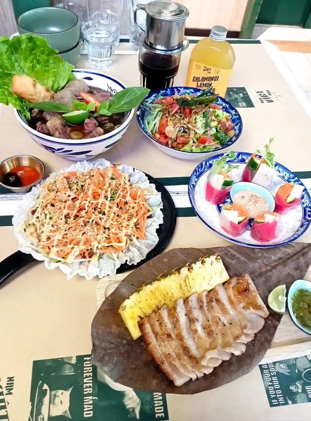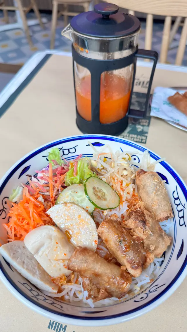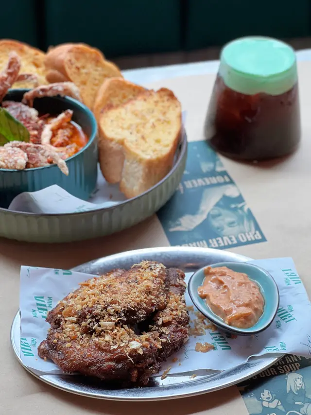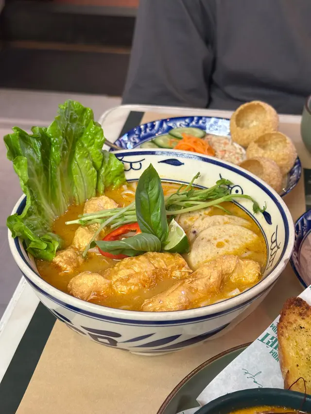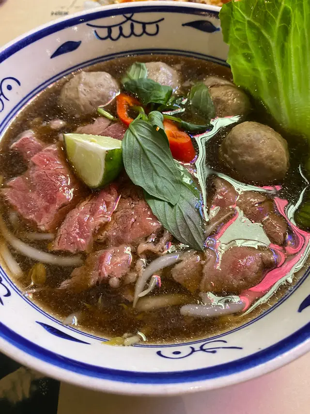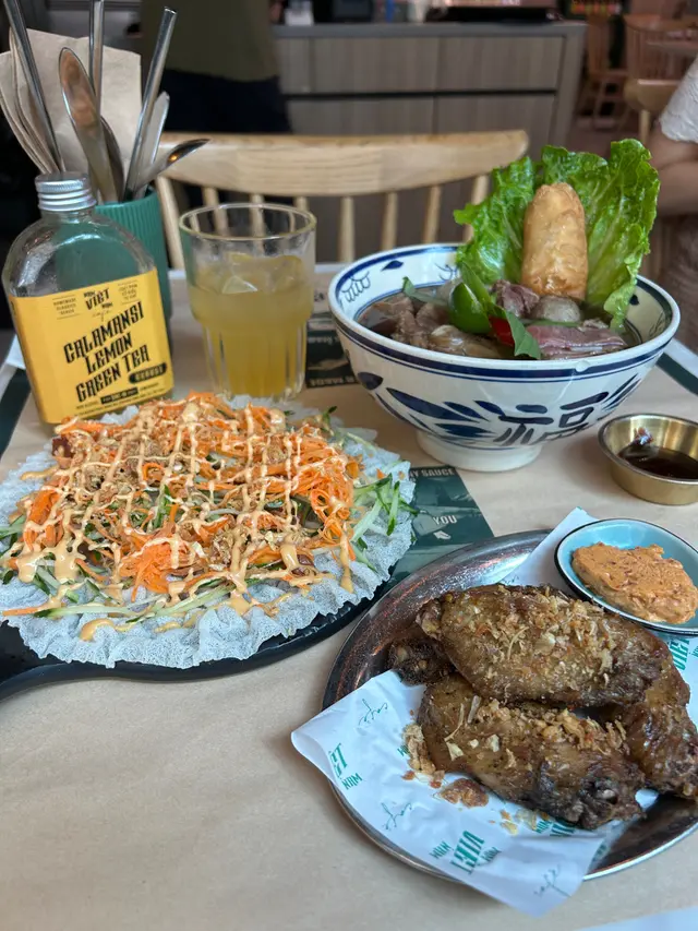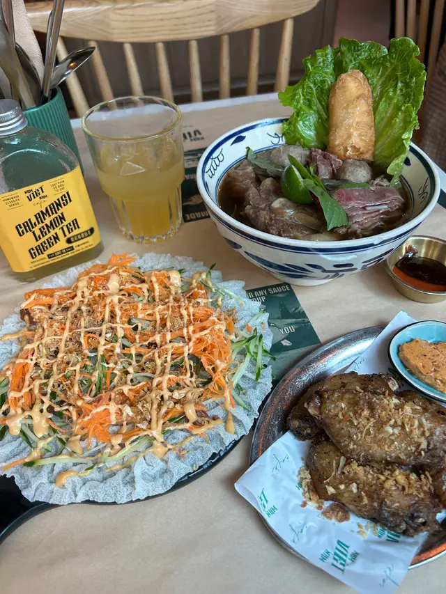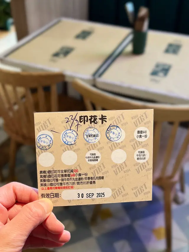 今日返工放半晝,所以就想搵個地方坐下休息吓~上網見到呢間樓上越南咖啡廳一於就一時究竟!!.咖啡廳大部份座位以梳化為主,坐落好舒服,而且有大玻璃射入陽光,冷氣充足,感覺舒服適合一個人休息,或者約埋三五知己一齊食個飯。.叫咗佢哋嘅招牌金邊粉,金邊粉滑溜而且掛湯,飲到湯底濃郁~而且非常足料,有兩大舊牛骨連肉,仲有牛筋、牛丸、生牛肉片,牛尾濃郁,而且食到唔同嘅口感!牛魔王必選🐮🐮我就比較鍾意食佢哋嘅生牛肉片,生熟程度啱啱好,而且好嫩滑~另外仲有油炸鬼、生菜、辣椒、青檸等不同配料,絕對可以調配出個人化嘅口味!.另外試咗佢哋兩款小食,分別係烤雞翼同脆米紙薄餅。脆米子薄餅絕對係開胃菜,而且層次口感都好豐富,有米紙嘅脆口、臘肉嘅鹹香、蘿蔔絲同青瓜絲嘅清新,配搭有趣,味道融和!兩個人share食就啱啱好啦~小編食唔晒打包咗,米紙就多咗一份煙靭感,同樣惹味~秘製炸萋葉雞翼調味特別,一食落又好香嘅香草味,㗳真啲又會有啲咸香,加上煎得香口保持到雞翼嫩滑,絕對係雞翼控必須要encore嘅選擇😂😂😂😂.飲品方面就揀咗柑桔檸檬綠茶,一上枱竟然係用玻璃樽裝,即刻有一個去咗越南嘅感覺,感覺好高尚😂🫣亦都係因為咁就算唔用冰杯飲其實都好夠凍,就咁飲會飲到好香濃嘅檸檬香,後尾慢慢就會滲出柑橘味,加咗冰飲反而令到入口多咗份冰涼感~啱晒而家熱辣辣嘅天氣🥹.餐廳仲推出左印花卡,儲夠印花仲可以減錢,真係抵到爛,下次可以叫埋朋友一齊黎食lu~…查看更多
