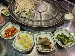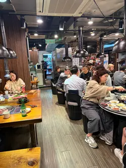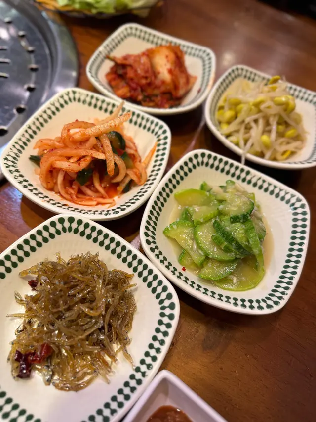 。燒烤會搭配埋韓式大醬,蒜片,辣椒同生菜。用生菜包埋豬肋骨,再加埋泡菜同蒜片,美味翻倍,食到停唔落口