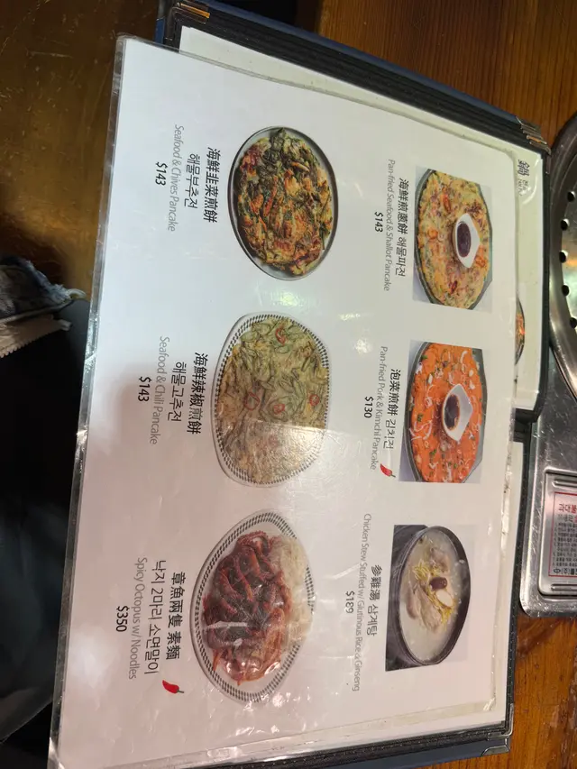 。牛肉火鍋,呢個牛肉火鍋幾大煲,兩個人食絕對夠飽。湯底係用咗高湯做基調,味道幾清甜,再落入大量胡椒粉,用嚟襯托食材幾適合。火鍋配料真係勁豐富,牛肉片脂肪同肉比例適中,淥熟之後好嫩滑,唔會太韌。韓式年糕煙韌,吸咗湯汁之後幾好味。豆腐幾滑,薯粉Q彈,韓式韭菜餃皮薄餡多,韭菜味香濃,再搭配埋大量新鮮蔬菜,洋蔥清甜,白菜爽脆,金菇彈牙,食落真係好飽