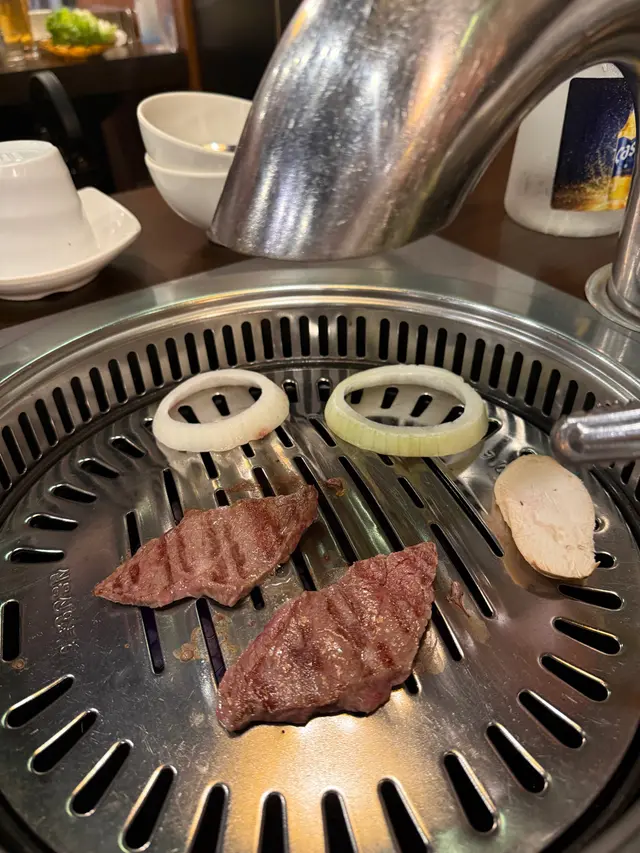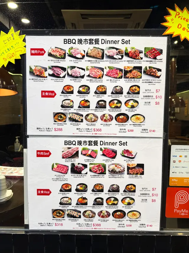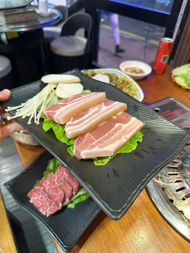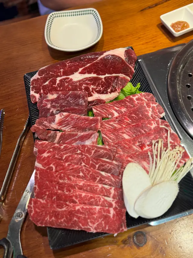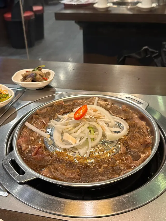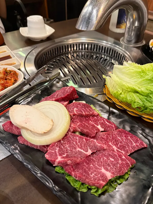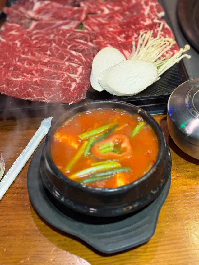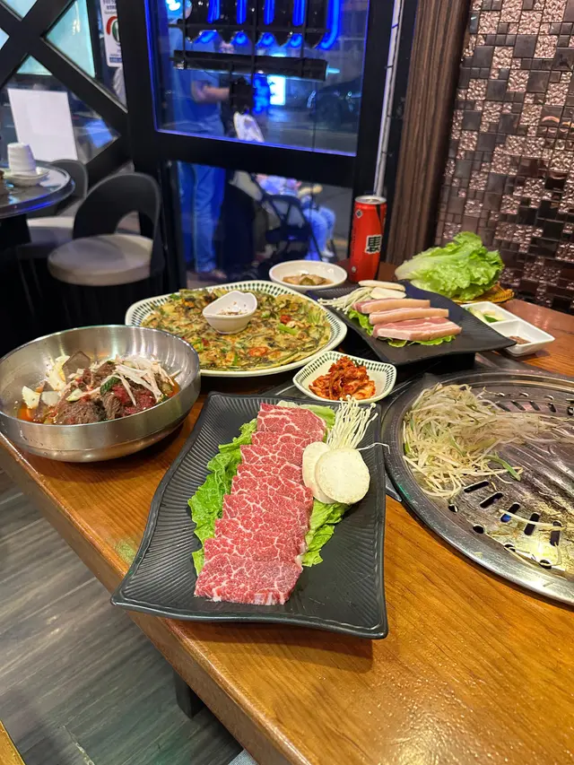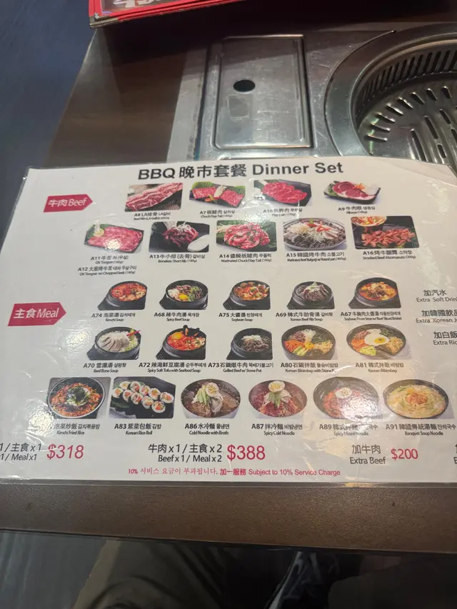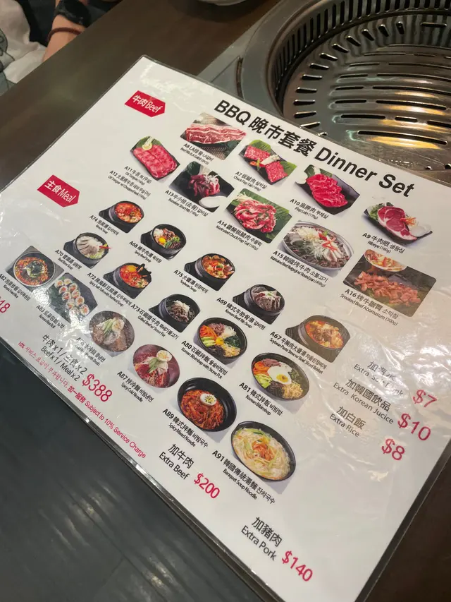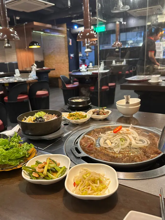 好耐冇食過韓國嘢,放工走咗去韓國街食,呢一間見到佢晚市都有做套餐,好似幾抵咁,就入去食咗。我哋點完嘢食之後店員就送上前菜,有5款咁多,好豐富。燒肉套餐有牛同埋豬嘅選擇,我哋就梗係揀咗牛啦。套餐包咗一個燒肉,兩個主食,其實兩個人都夠飽,不過我哋就好大食,叫多咗個飯卷。我哋揀咗個板腱肉,都幾大碟,牛肉顏色都幾靚,雖然食落去唔係太多油脂,但係口感都唔會話好靭。我哋燒得朝朝香香,然後沾上燒肉醬汁,配上泡菜,再用生菜包住食,味道一流。辣海鮮豆腐湯呢個湯估唔到佢又幾鮮味,唔會太辣,有啲蜆、各款蔬菜、雞蛋,仲有唔少得大大嚿嫩滑豆腐。所有嘢都入晒未,夜魅得來又鮮甜,我哋成鍋湯飲晒。石鍋拌飯呢個石鍋拌飯簡直係我哋食韓國嘢必食,熱辣辣嘅石鍋令到啲飯有少少微微焦香,個底仲有少少飯焦,而且材料好豐富,除咗有牛肉、仲有唔同顏色嘅蔬菜、紫菜同埋蛋,加入韓式辣醬拌飯,冇得輸。紫菜包飯個紫菜包飯又係簡單得來超好食,飯粒煙靭煙靭,用紫菜包住。飯卷裏面有腸仔、蔬菜同埋蛋,色彩繽紛。…查看更多