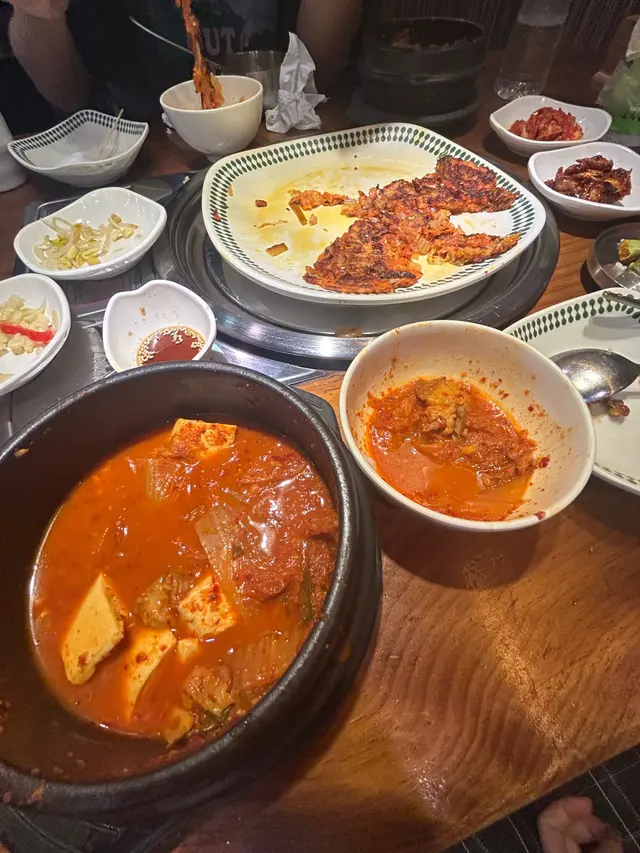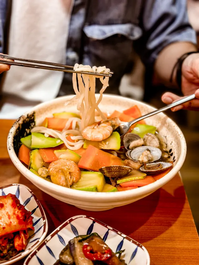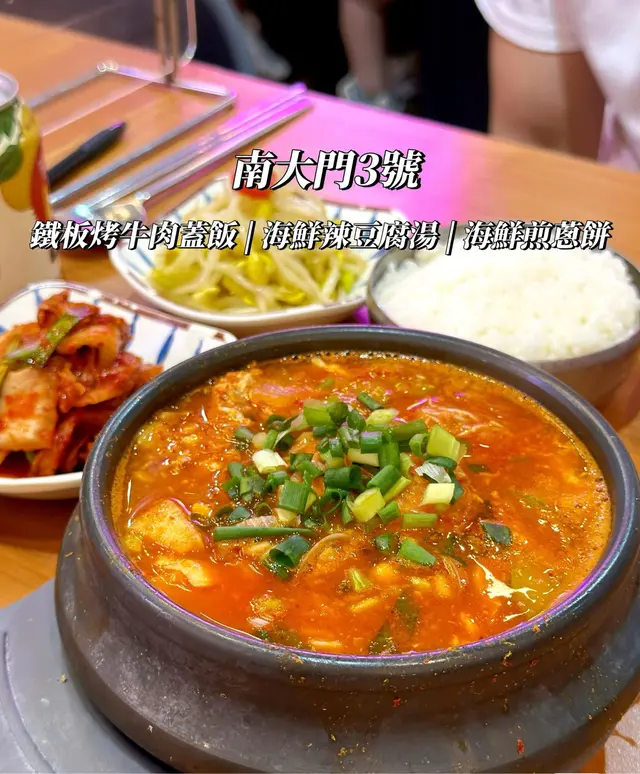 之前都有幫襯過南大門燒烤,好好食。今次試吓隔離呢間「南大門 3號店」,佢冇燒肉食嘅,不過其他正宗韓國家常菜式都應有盡有。呢度燈光柔和,環境冇咁嘈,同燒烤店嘅煙火氣截然不同,傾偈都舒服啲。海鮮辣豆腐湯 $85一上枱就聞到嗰陣泡菜香辣味,湯底用大蝦同蜆熬到勁鮮,辣勁係慢慢滲上喉嚨嘅後攻型!豆腐好滑又索晒湯汁,撈飯食簡直係驅寒神器。花蛤刀削麵 $95個湯底先係精髓 —— 花蛤同超多新鮮蔬菜熬到奶白色,飲落勁鮮甜!手切刀削麵掛湯力一流,咬落煙韌有麵香,加埋份量勁多嘅海蝦同花蛤,誠意十足。韓式煎餃子 $75絕對係驚喜!外皮煎出金黃香脆蕾絲邊,入面係粉絲肉餡,滲出淡淡胡椒香,點少少醋更加惹味!紫菜包飯 $66飯粒用麻油撈過閃令令,清脆嘅青瓜同醃蘿蔔,加埋鹹香嘅腸仔層次分明~最抵讚係飯溫控得剛好,食得出新鮮製作嘅溫度。最後嗌咗韓式米漿同韓國梨汁(各$18)。米漿濃稠得黎帶甜香,梨汁清甜潤喉,正好平衡返啲濃味菜式。總括嚟講,呢度將韓國家常菜昇華到另一個境界,味道好而且份量都算好多~等天氣涼啲再想食暖心韓國菜,肯定再嚟encore!…查看更多