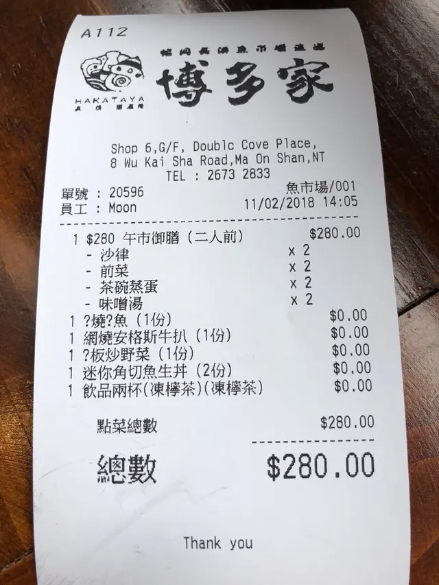 馬鞍山迎海薈平日人流不多,博多家為吸引客人,近日推出自助午餐~$88 可以享用: - 自助沙律吧 : 沙律菜的款式夠多、新鮮- 各類壽司: 壽司有加州卷、三文魚、墨魚etc; 以88蚊的價錢,總不能期待有什麼貴魚生吧。- 前菜: 煙鴨胸、火腿、 醃青瓜蓮藕、各類芝士配餅乾- 熱食: 炸咖哩魚丸、炸墨魚條、麵豉湯- 甜品: 自家製雪糕( 綠茶味好好食!) 、 麵包布丁、雪梨雪耳糖水etc其實不用再叫主菜也夠晒食,加主菜的價錢為$10起,我叫左兩個試下: - 咖哩炸豬扒飯= ok啦,普普通通,如果豬扒再炸鬆脆一點會更好- 日式牛肉滑蛋丼 = 味道可以,但牛肉太硬了難咬開總體來說,以食物質素來說,不太突出。可是環境舒適,服務態度好,如果不趕時間可以慢慢食到3點鐘~ 還是會再來的。…查看更多