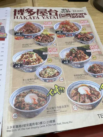 博多屋台 (上水) 網址: https://s.openrice.com/QrbS0AFCA00 地址: 香港上水彩園路8號彩園廣場3樓22-23號舖 電話: +852 31070198
