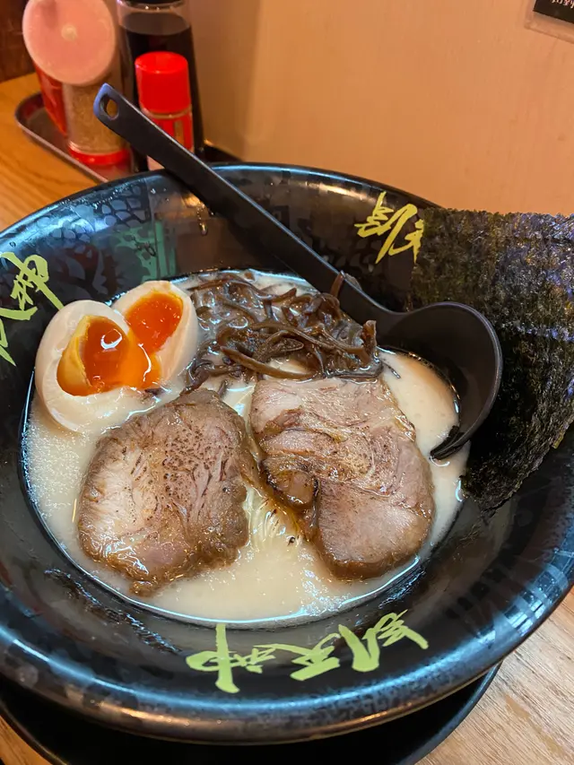 聽朋友講好似就嚟結業所以趁經過銅鑼灣就試咗先~嗰晚大概排咗九個字 因為得bar枱所以等得比較慢 位置偏窄同埋空氣唔流通 整體衛生就有啲差🥵ღ豚骨湯麵——別天神套餐湯底唔錯 飲起嚟微厚身 純粹而唔會過濃味嘅豚骨湯🍥一啖湯配上醃漬嘅溏心蛋實在太滿足🥰叉燒有微焦嘅香氣拉麵質感偏硬得嚟啱啱好😋評分: 9/10ღ 餃子(5隻)——別天神套餐相對上好普通😢外皮偏薄 內餡有啲少評分: 4.5/10➖➖➖➖➖➖➖➖➖➖Overall食物質素:🤍🤍🤍環境服務:🤍打卡指數:🤍➖➖➖➖➖➖➖➖➖➖📍博多拉麵別天神 銅鑼灣告士打道277號地下3A號舖…查看更多