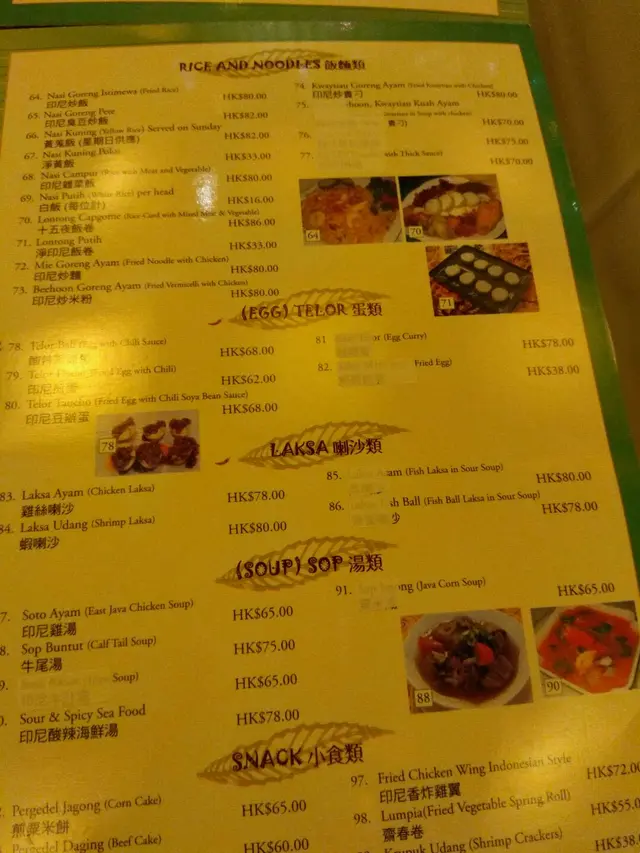 印尼餐廳 (尖沙咀) 網址: https://s.openrice.com/QrbS0snG000 地址: 香港尖沙咀加連威老道66號地下及1樓 電話: +852 23673287