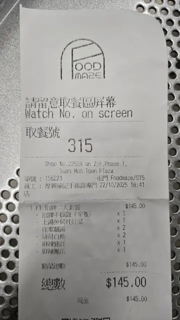相隔很久沒有來屯門了,在屯門市廣場內的Food Maze有我喜歡的手撕雞專門店 - 厚興瑜記手撕雞,這是全港第一間手撕雞堂食店,之前在其他分店試過外賣,現在可以堂食真的很方便,還有join了會員就有更多coupon優惠,$20就食到個下午茶。 餐牌上除了手撕雞、香蔥霸王雞、金銀蒜香雞、花雕醉雞、秘製香辣雞,還有新品 [麻椒手撕雞],這新品的特色在於是於溫氏食品的明星廚師張錦祥推出的大師麻椒手撕雞。有四款皇牌雞飯套餐選擇,我們選了皇牌雞二人套餐 $168,套餐包括有皇牌雞半隻、雙拼小食、上湯娃娃菜、住家靚湯、絲苗白飯,白飯可轉米粉/湯麵/水晶粉,轉稻庭烏冬 +$10,種類豐富,價錢親民。 皇牌雞二人套餐 - 金銀蒜香皇牌雞 (半隻) 皇牌雞的面層鋪了滿滿炸蒜茸及香蔥,脆脆的好香口,雞都好大碟,份量十足,雞肉鮮嫩,味道濃郁,軟滑有少少嚼口,醬油調味恰度好處,不會過鹹,拌飯一流,配合幼滑米粉,上湯清甜,米粉吸到湯汁,越吃越滋味。 小食雙拼兩款小食我們選擇小冬菇和雞腎,雞腎好入味,口感好爽,小冬菇炆至軟綿,醬汁帶鹹香微辣味,兩款涼拌開胃小吃真不錯。 上湯娃娃菜湯底非常清甜可口,魚腐口感軟綿,娃娃菜翠綠鮮爽,整碗很快給我們飲完。住家靚湯 這天的住家湯是章魚蓮藕紅蘿蔔豬骨湯,十分足料,湯味鮮甜滋潤,豬骨煲到溶化,肉味香濃,蓮藕爽口,有住家湯的味道。…查看更多