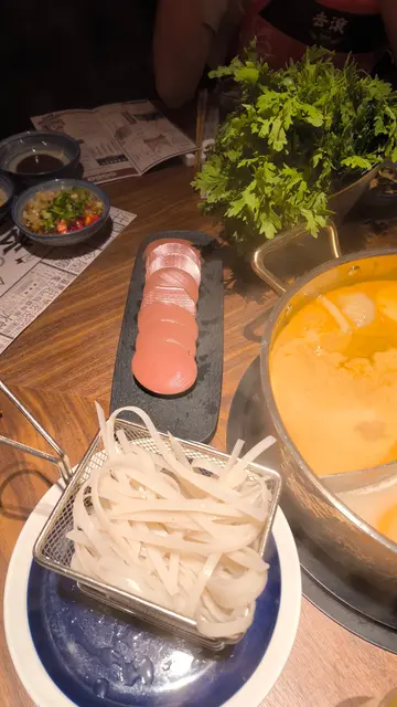 🥘這間火鍋店名稱充滿玩味巧思 店內裝潢走摩登型格路線 卻又帶著強烈的懷舊氣息 霓虹燈光和電影海報等 營造出七八十年代香港的獨特氛圍 餐廳同時設有獨立包廂 調設計低調奢華並具格調 是朋友聚會或熱鬧小酌的好去處.▪️湯底 四香重慶老火鍋 | 原個椰子雞湯|密密翻啅沙爹湯 | 蕃茄豬骨薯仔湯.四款湯底各有特色 當中最喜愛四香重慶老火鍋湯底 上檯瞬間 麻辣香勁撲鼻而來 乾辣椒與花椒鋪滿鍋面 湯底鮮紅誘人 麻感在舌尖炸開 辣勁濃烈卻不嗆喉 搭配肥牛特別過癮 想清潤一點可試試原個椰子雞湯 店員先將椰青水注入鍋底 再加入椰肉與嫩雞塊 沸煮時椰香四溢 湯頭清潤甘甜.▪️肉類 x 海鮮特級即日新鮮街市肥牛 | 潮汕手切牛頸脊|黑毛豬豚肉 | 東星斑片| 肥美桶蠔 | 潮汕南澳噴水鮮魷 | 九節蝦.牛頸脊細膩刀工切出均勻薄片 肉質嫩滑油香四溢 黑毛豬豚肉口感軟腴多汁 富有嚼感 東星斑片魚肉雪白鮮甜 下鍋即熟 爽滑帶海水甘香 九節蝦則緊緻彈牙 鮮甜爽口.▪️火鍋配料 脆爆響鈴 | 潮汕彈彈墨魚丸 | 牛B子手打牛丸 | 哈波子手打蝦丸 | 沙嗲牛肉洋蔥餃 | 鮮肉韭菜餃 | 鮮蝦餛飩.墨魚丸口感彈韌富嚼勁 手打牛丸和蝦丸彈牙有嚼勁 肉質緊實爽彈 沙嗲牛肉洋蔥餃餃皮包裹沙嗲醬香與肉汁 鮮蝦雲吞皮薄餡多 都是火鍋的必點之選.▪️甜品 流沙芝麻球|流心糍粑 甜品相當有驚喜 流沙芝麻球外層滿佈芝麻 酥脆軟糯 內裏流心香濃 口感軟糯多層次 流心糍粑外脆內軟 金黃香脆外皮內裏隱藏香甜黑糖醬 甘香濃郁 是火鍋後的完美收結🍡.餐廳位於登龍街Midtown 27樓 裝潢巧妙糅合復古與現代元素 營造一種懷舊雅緻的氛圍 喜愛火鍋的話 不妨大伙兒到訪一試💁🏻♀️…查看更多