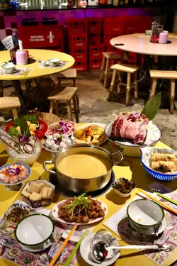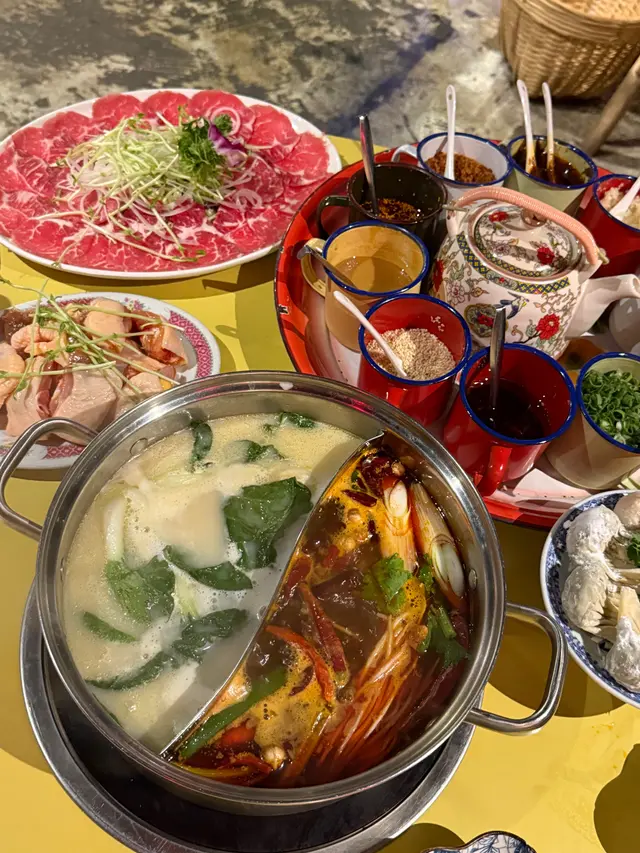 年紀相約既人約食飯,揀左個好地方。雖然地方唔大,但設計用心,霓虹燈,仲有枱枱凳凳,同埋其他配置都喺懷舊港式風味。晚上一班人熱熱鬧鬧,播埋舊歌,氣氛十足。而家仲有限時$1枝啤酒,10枝起計,勁抵飲。港式打邊爐有咩食,相信唔使我多介紹,海鮮、豬牛羊同埋丸餃做膽,仲有椒鹽乜乜都可以食到。咁熱鬧嘅環境,店員招呼都好殷勤,主動加湯,又會收走碗碟。咯咯雞花膠湯金黃色嘅花膠雞湯真材實料,雞同花膠一大碟比你。雞本身已經有8成熟,口感鮮嫩,加埋花膠落湯度,成個湯底原汁原味,真係先飲為敬。牛魔王拼盤 本地手切肥牛、安格斯牛頸脊、牛脷托、封門柳、牛肉粒、黑安格斯牛板腱,用冰坐住成盤上,夠晒豪華。各款牛肉既質素平均地高,相信牛魔王都冇投訴。紫菜炸響鈴如果平時打邊爐要食響鈴真係要試試,響鈴大大個,裏面卷住紫菜,即叫即炸,輕輕一灼,紫菜香味,尤其突出,享受豐富層次。蘇格蘭蟶子 南非鮑魚 鮑魚同蟶子同樣爽口,來貨新鮮。西班牙黑毛豬 肥瘦相間,令瘦肉甘香而不硬,令人回味。招牌芫茜餃一咬開係飽滿既芫茜餡,芫茜香味直撲入鼻,絕對適合芫茜關注組人士。Q彈鮮蝦丸併Q彈墨魚丸 Q彈冇呃人,加埋蟹籽賣相更吸引。冰豆腐吸湯之選。椒鹽雞軟骨大排檔版本既椒鹽雞軟骨,港式風味,香口惹味,餸酒一流。…查看更多