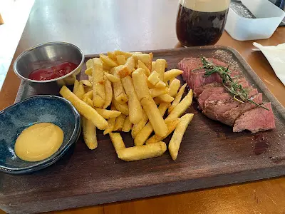 我最開心,就是拜訪小店了。在歌頓道,有這一間名叫《Sheep and Pig》的小小食店,是一間長期吸引住我的小食肆,也是一間我覺得有特別事件要獎勵一下自己才會來的地方。這次,則好是向天后方向行,而又因為就黎離開炮台山的工作生活,所以要獎勵一下自己,於是,就來了。可是,執筆時,已發現此小店光榮結業了。這一間食店 / 咖啡店,真係豆膶咁細。中午如不早來,好快就會爆滿。餐廳雖然細,但店方並沒有擺到密密麻麻,一個人來,或是一檯四人來用餐,感覺都舒服。午餐,有三個 set,前菜的餐湯是一個自家製的蘑菇湯。放入口時,即時已經感覺到滿口都是蘑菇粒。湯有忌廉香,但感覺到店方落得不重手,能盡顯蘑菇的味道。然而,加了少許橄欖油之後,直接令到這湯更加之香濃。這店叫《Sheep and Pig》,但當日的午市餐牌並沒有羊,然而,最吸引我的,就是牛。當日我的午餐是 USAD Iron Steak serve with French Fries (美國牛板腱配薯條) ,要求了5成熟,出來的牛板腱扒果真是燒到剛剛好。著條香脆,牛肉嫩滑而味濃,我吃得好滿足。這店雖不是主打咖啡,但其咖啡 menu 的選擇可真是多囉囉。那天,店員推介了氣泡咖啡。看起來,真的有點像飲黑啤的一樣,入口甘香。我沒有多加把口去問,這一杯,應該就是所謂的 Nitro Coffee。果真夠特別。而此店的選豆非常好,咖啡味道很是香的。食物好,環境又算是唔錯。成個午餐的感覺就是好 relaxing。忙碌了半天,來這兒輕鬆一個下午,吃點好東西,飲杯好咖啡,是一件快樂的事。可是,店主門另有新計劃,搞火鍋店。因為人手問題,這《Sheep and Pig》就要向大家告別了。…查看更多
