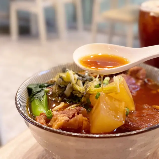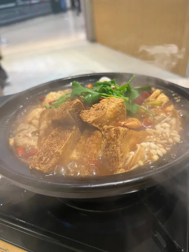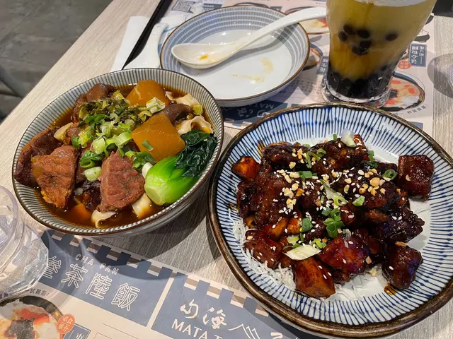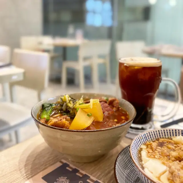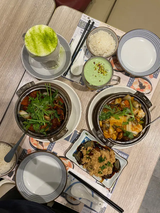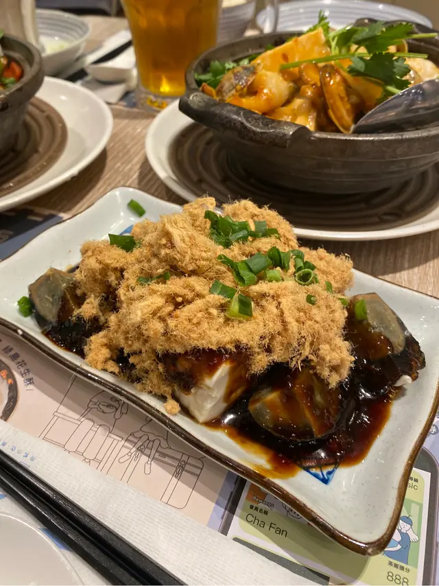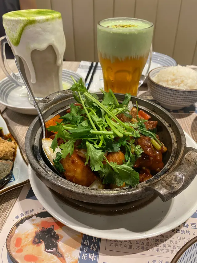 是日食台式餐點,叫左個限定二人套餐,包括一款前菜同兩個主菜,附送兩個靚仔同飲品,升級特飲可享半會優惠。環境舒適,服務親切,飲品有創意又有驚喜,下次會再去試埋佢哋嘅甜品!🌖皮蛋豆腐豆腐上面鋪滿肉鬆,份量多到爭啲見唔到豆腐,肉鬆豆腐配埋皮蛋一齊食,加埋醬油膏鹹中帶甜整體有層次感~ 啱曬而家咁炎熱嘅天氣。🌗經典三杯雞煲一上枱香氣已經撲鼻而來~三杯嘅靈魂(麻油、米酒、醬油)發揮得淋漓盡致,雞件索晒汁,每啖都係濃郁惹味,好啱重口味人士🤤 不過略嫌偏鹹,建議配白飯一齊食,完美中和!🌖鮮味海鮮豆腐煲呢煲就清鮮得多,用料唔手軟,有蜆、蝦、魷魚、魚片,魚片滑到好似豆腐咁,豆腐本身就有啲煙韌感,似足介乎於硬豆腐同魚片中間嘅口感,好特別~湯底唔重味,但就飲得出海鮮精華,有種溫和嘅鮮甜👍🏻。🌖古早味綠豆沙牛奶 +$21.5綠豆沙牛奶有少少草青味,不過重點係個奶蓋,好厚好綿,飲落仲有淡淡奶香,層次感不錯!🌖開心果脆脆四季春茶 +$17Wow!開心果奶蓋真係市面罕見,一見即點😆! 奶蓋係真心濃郁,開心果味好突出,唔係得個名~今次最大敗筆就係我手賤揀咗少糖(70%),結果飲落太甜,如果你唔係螞蟻人建議揀半糖甚至三分糖,咁就perfect啦~-…查看更多
